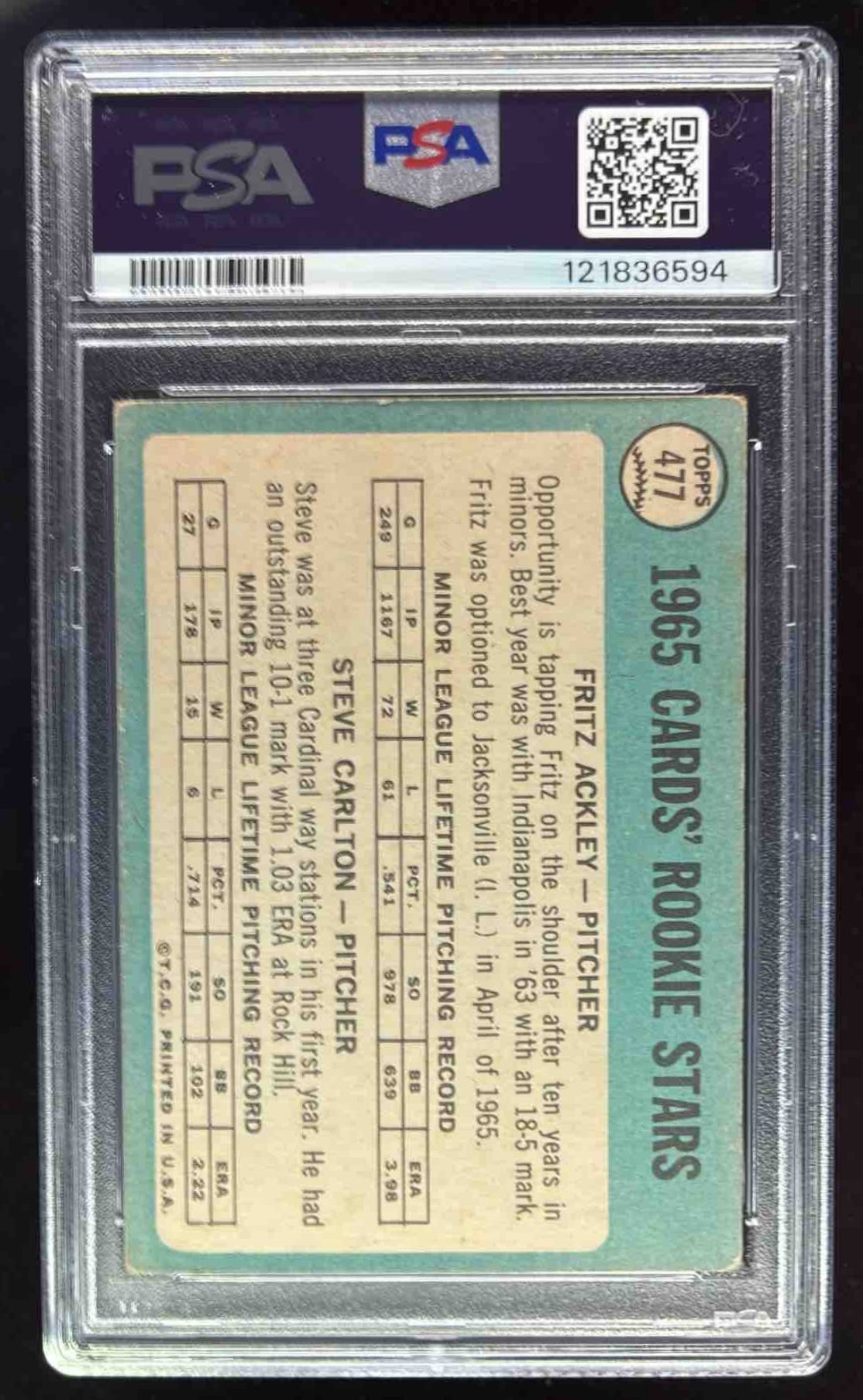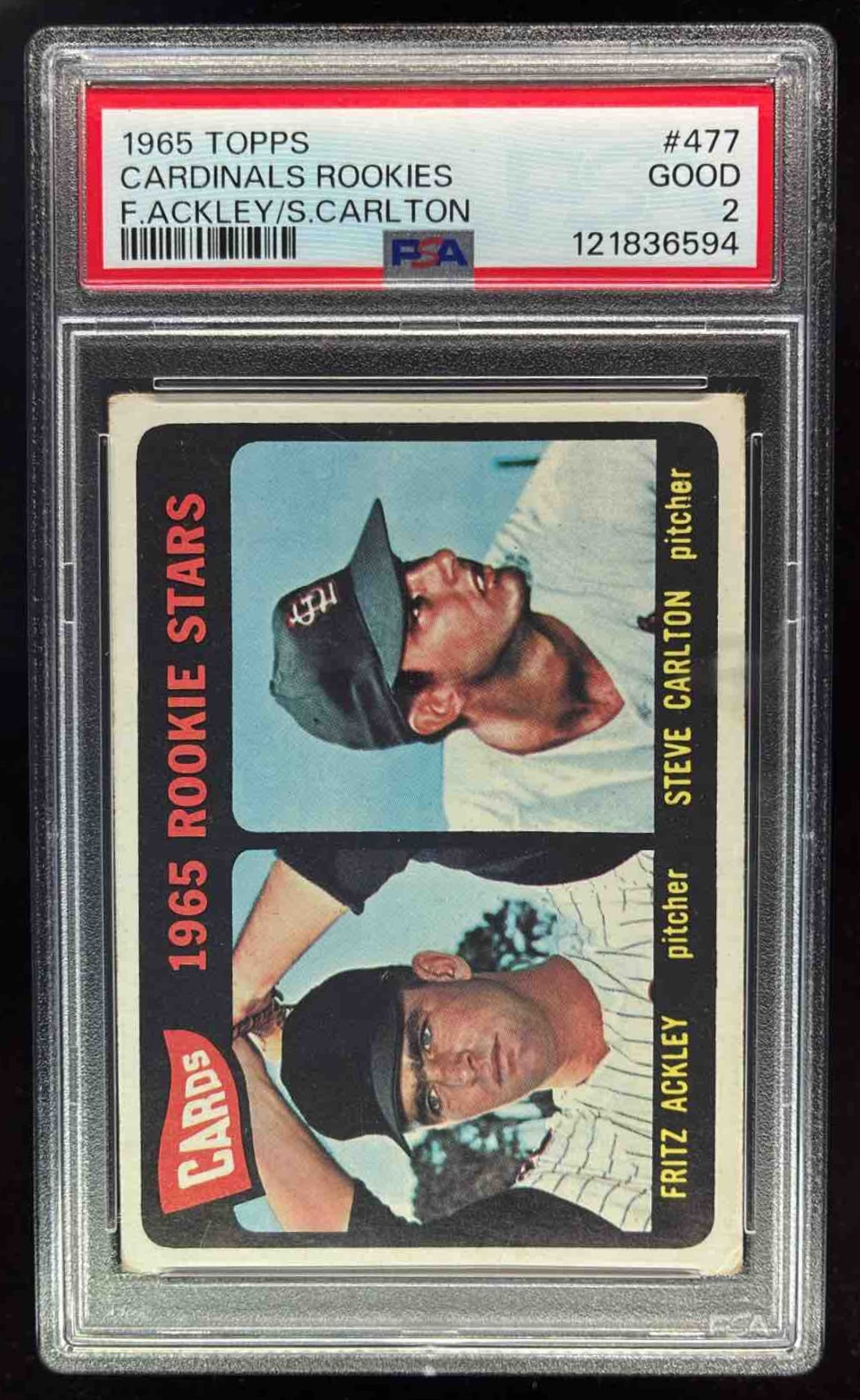 1965 Topps #477 Cards 1965 Rookie Stars Fritz Ackley Steve Carlton RC PSA 2