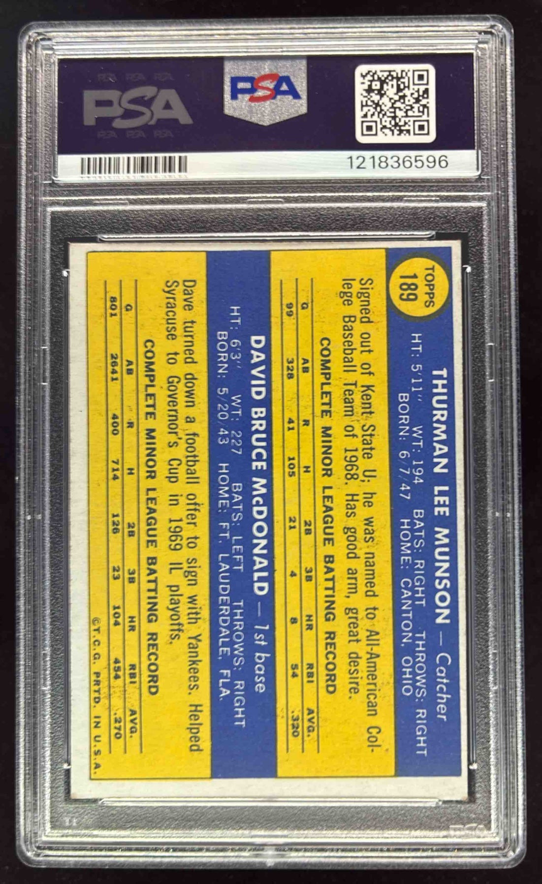 1970 Topps #189 Thurman Munson Dave McDonald RC PSA 5