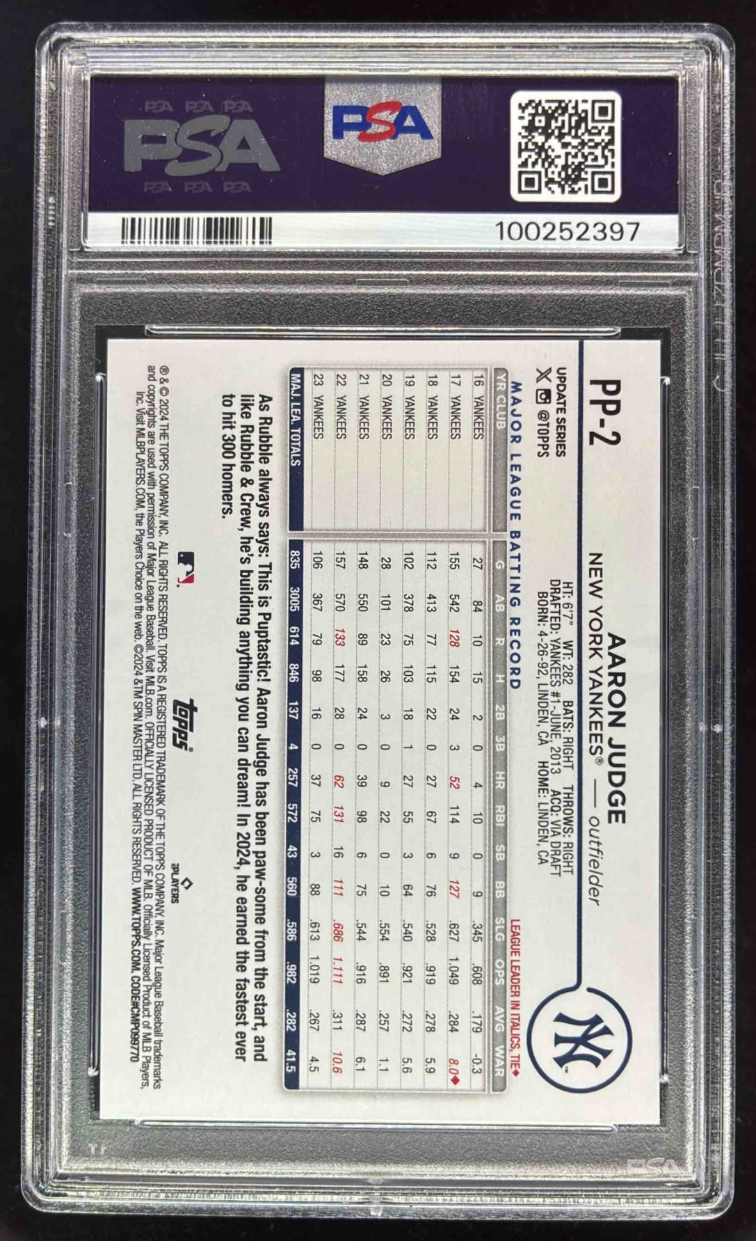 2024 Topps Update Paw Patrol Aaron Judge #PP-2 Aaron Judge PSA 9