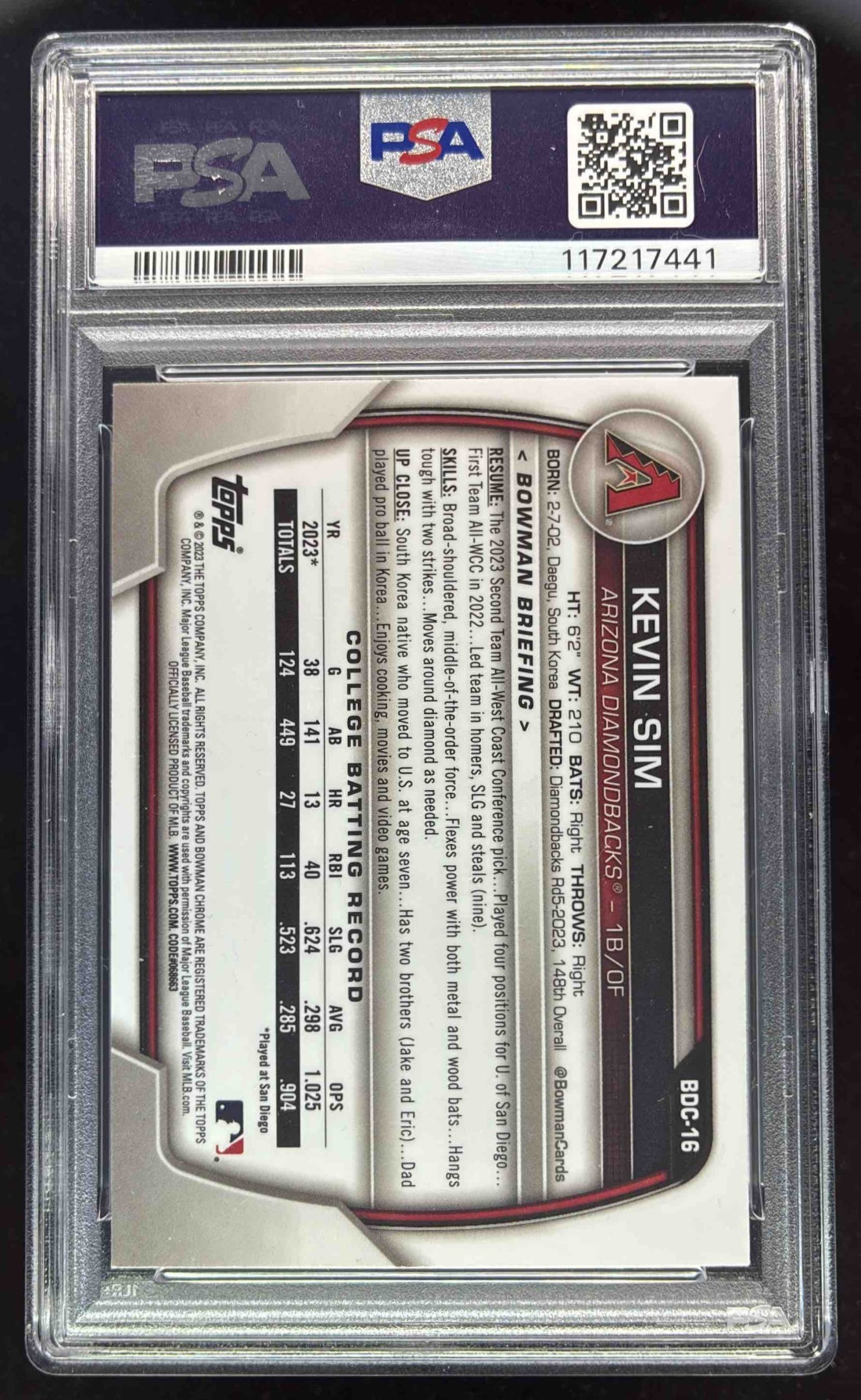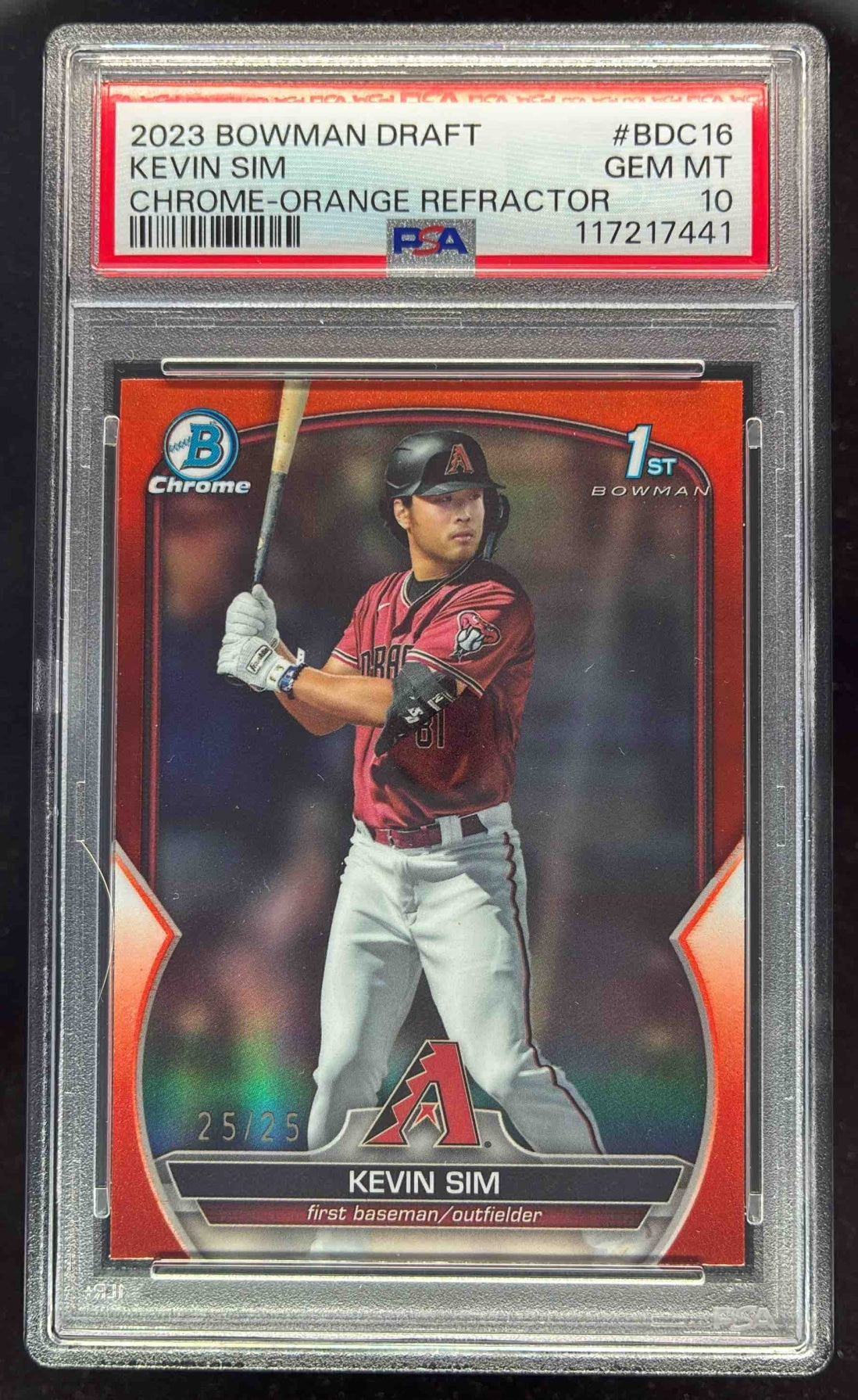 2023 Bowman Draft Chrome Orange Refractor #BDC-16 Kevin Sim RC /25 PSA 10
