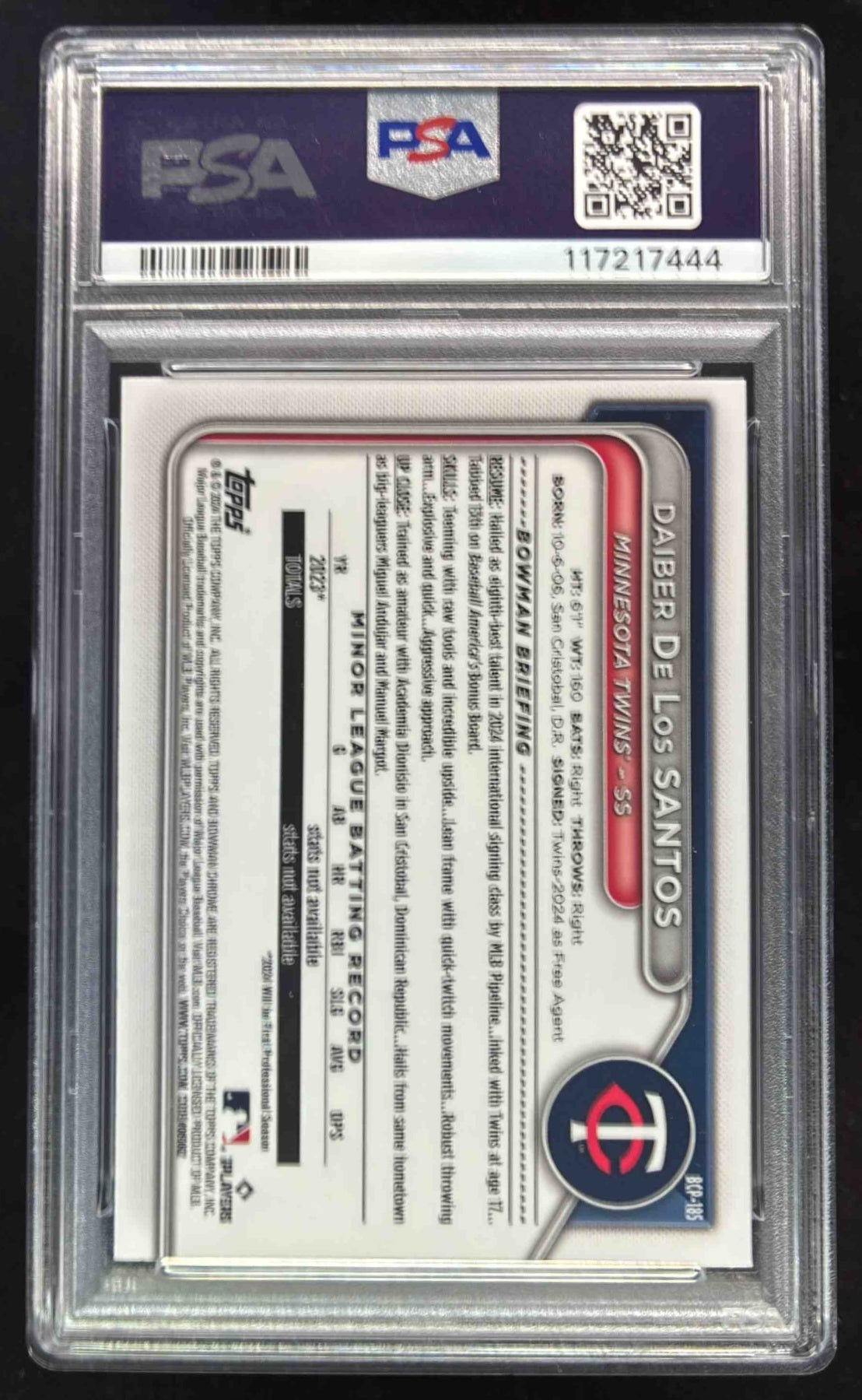 2024 Bowman Chrome Orange Refractor #BCP-185 Daiber De Los Santos RC /25 PSA 10