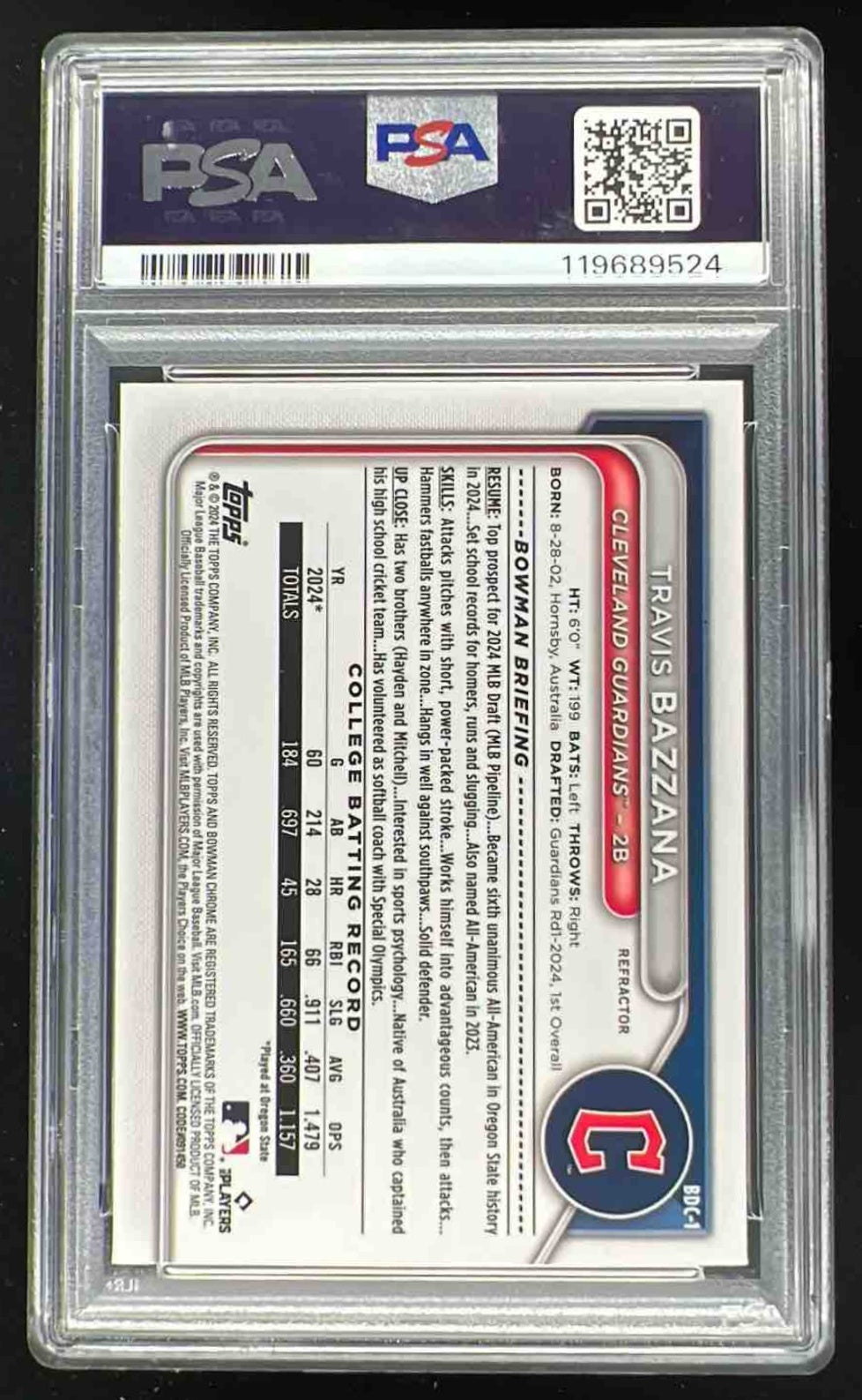 2024 Bowman Draft Chrome Refractor #BDC-1 Travis Bazzana RC PSA 9