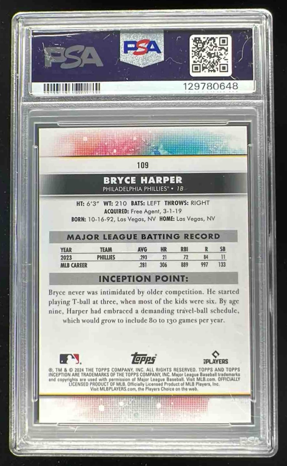 2024 Topps Inception Short Prints Alpha #109 Bryce Harper PSA 10