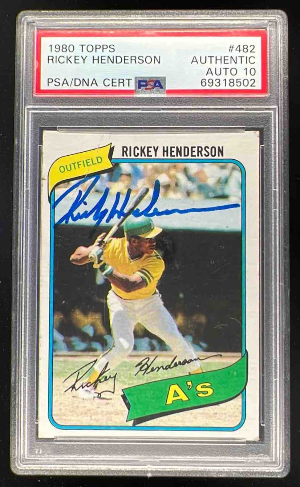 1980 Topps #482 Rickey Henderson RC Auto PSA Authentic