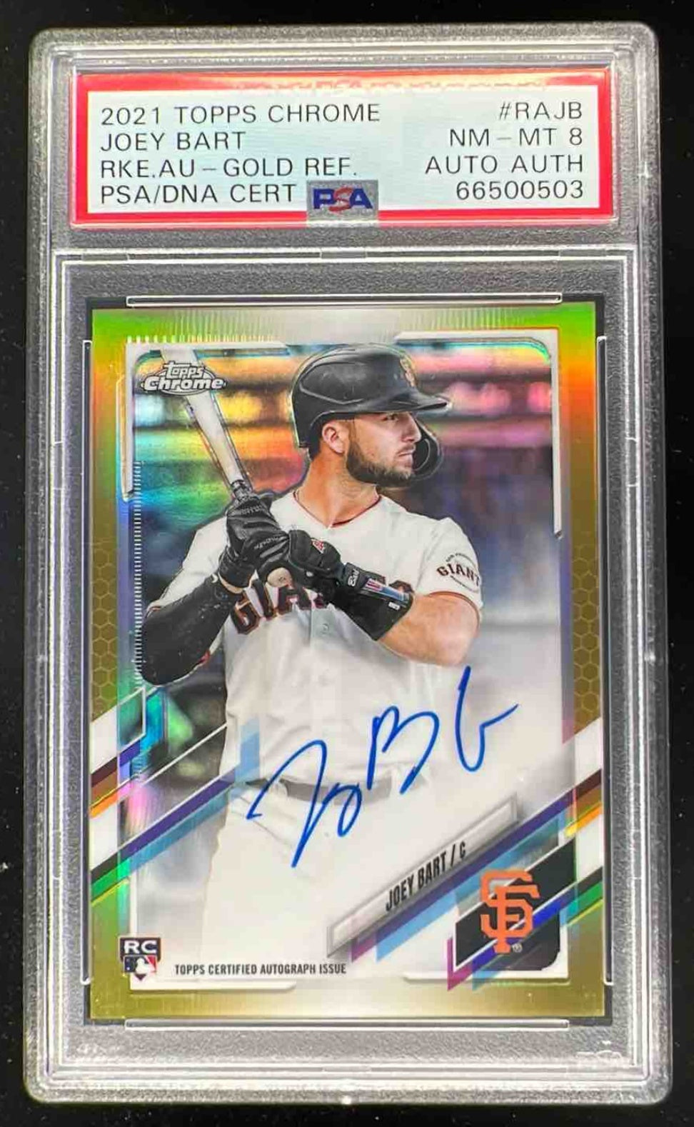 2021 Topps Chrome Rookie Gold Refractor #RA-JB Joey Bart RC Auto /50 PSA 8