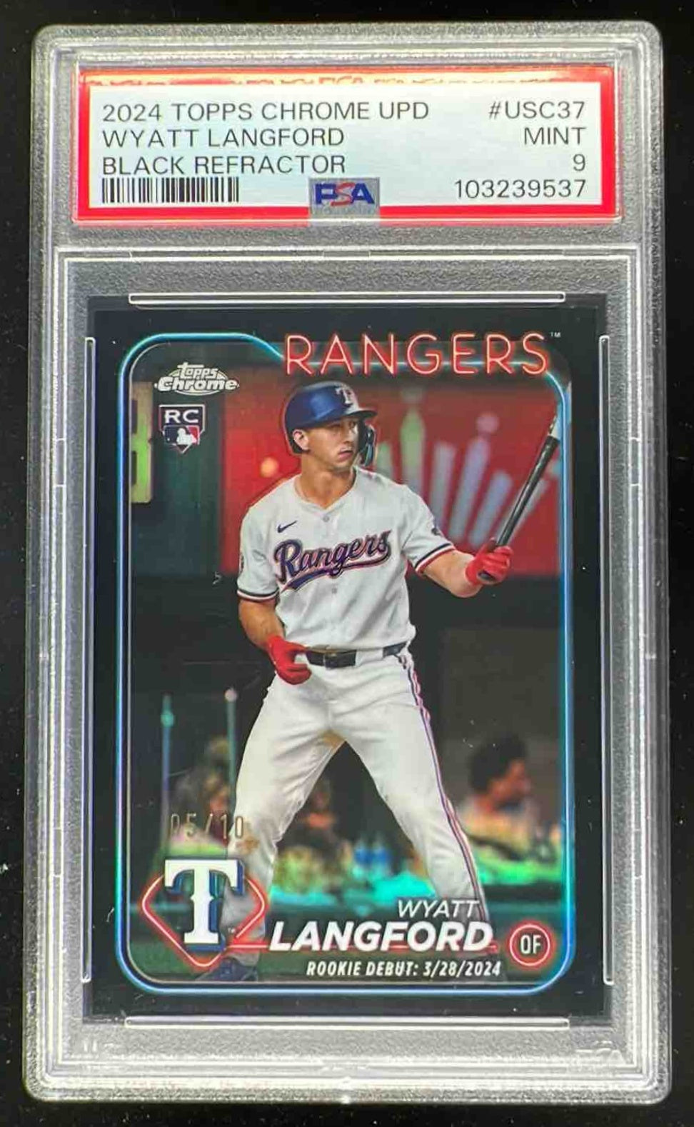 2024 Topps Chrome Update Black Refractor #USC37 Wyatt Langford RC /10 PSA 9