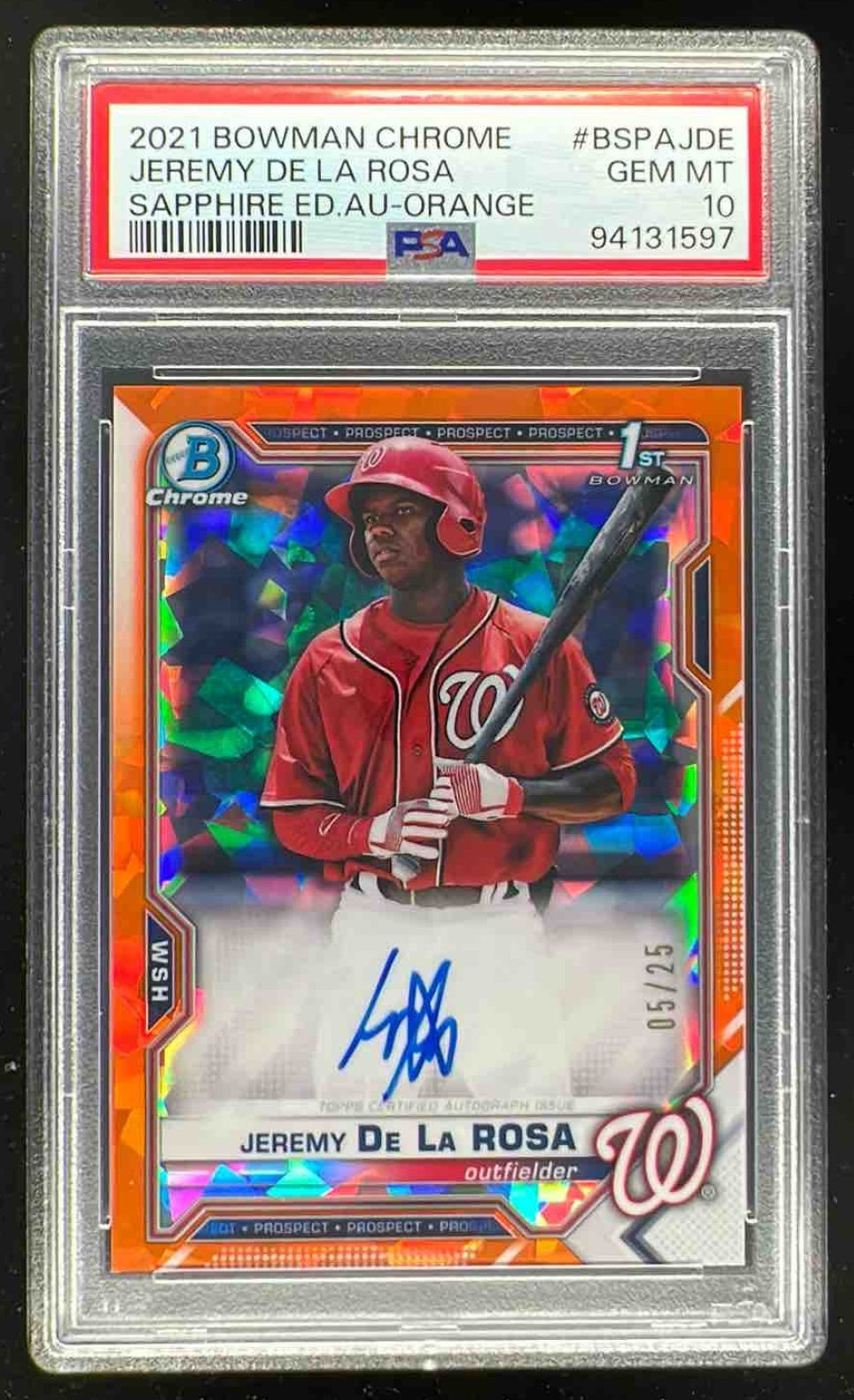 2021 Bowman Sapphire Chrome Orange #BSPA-JDE Jeremy De La Rosa Auto /25 PSA 10