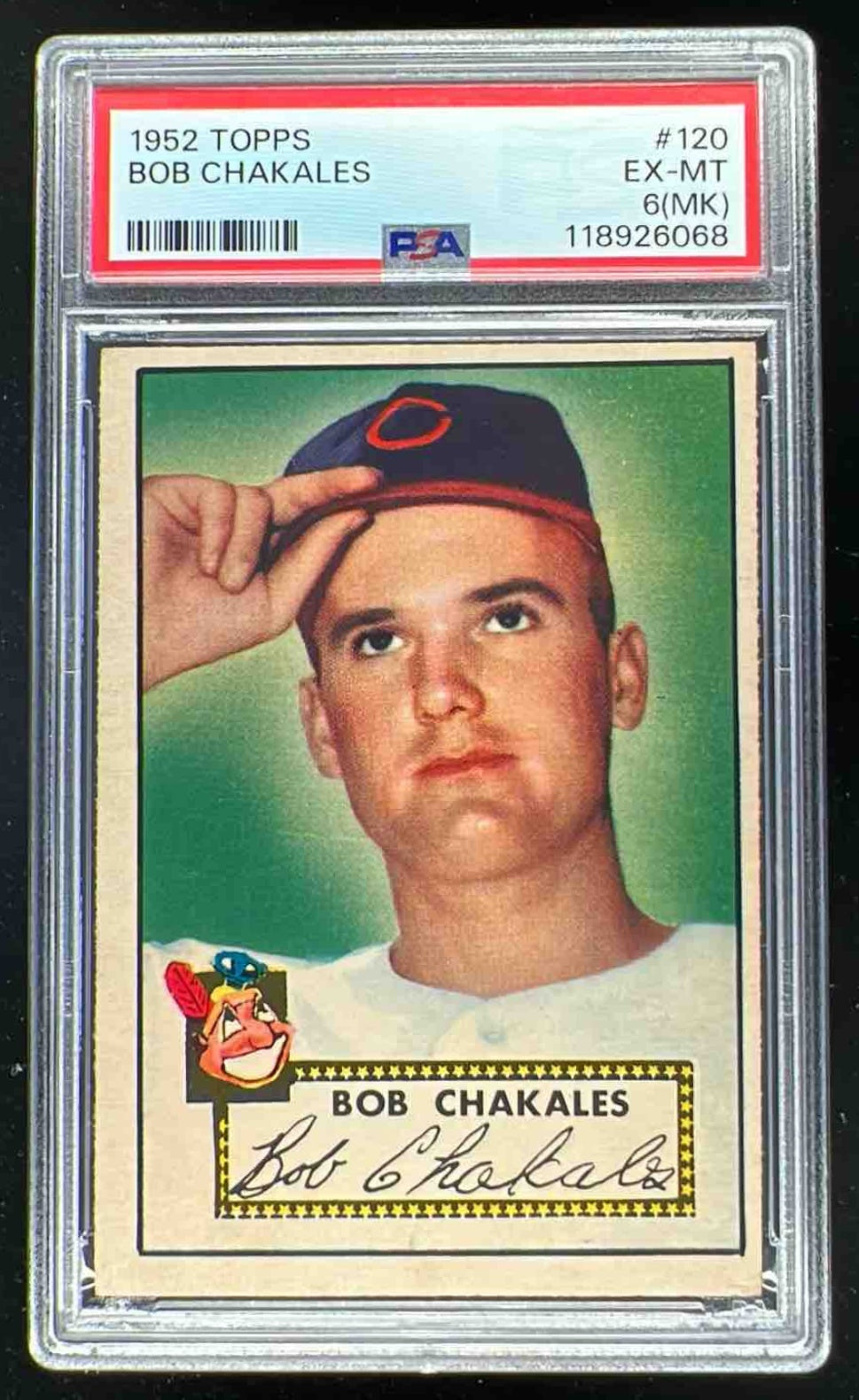 1952 Topps #120 Bob Chakales RC PSA 6 (MK)
