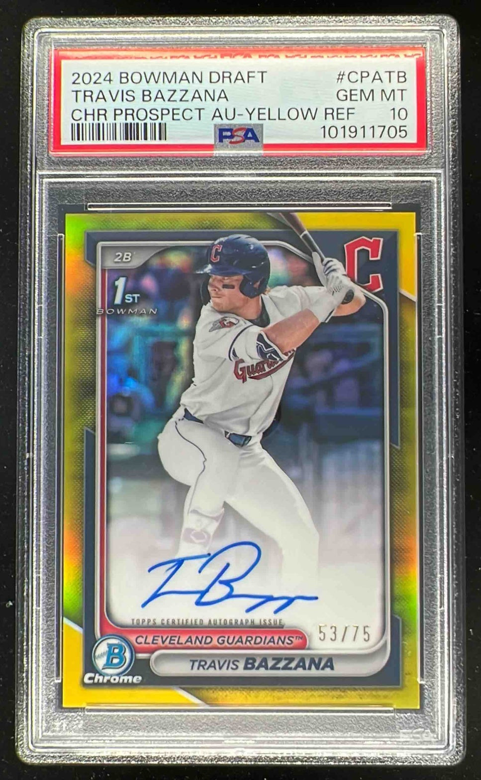 2024 Bowman Draft Chrome Auto Yellow Refractor Travis Bazzana RC Auto /75 PSA 10