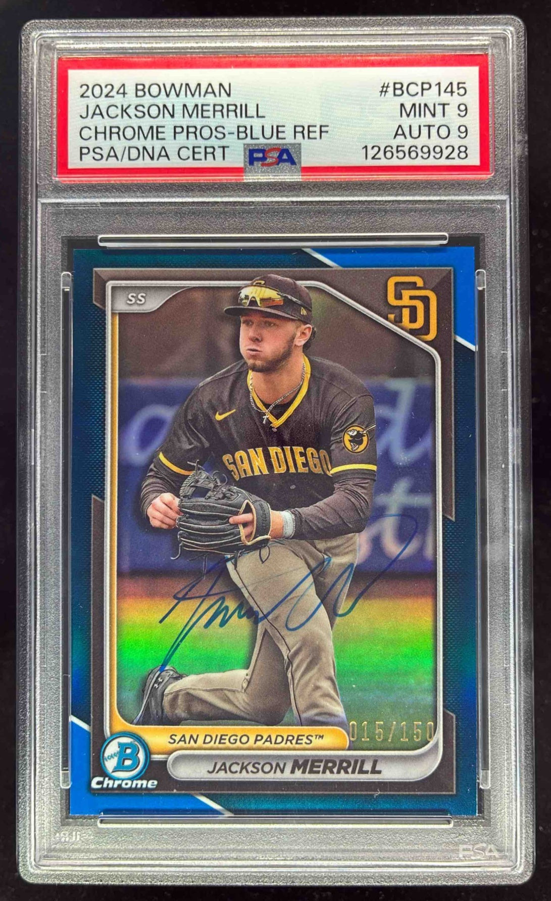 2024 Bowman Chrome Prospects Blue Refractors #BCP-145 Jackson Merrill /150 PSA 9