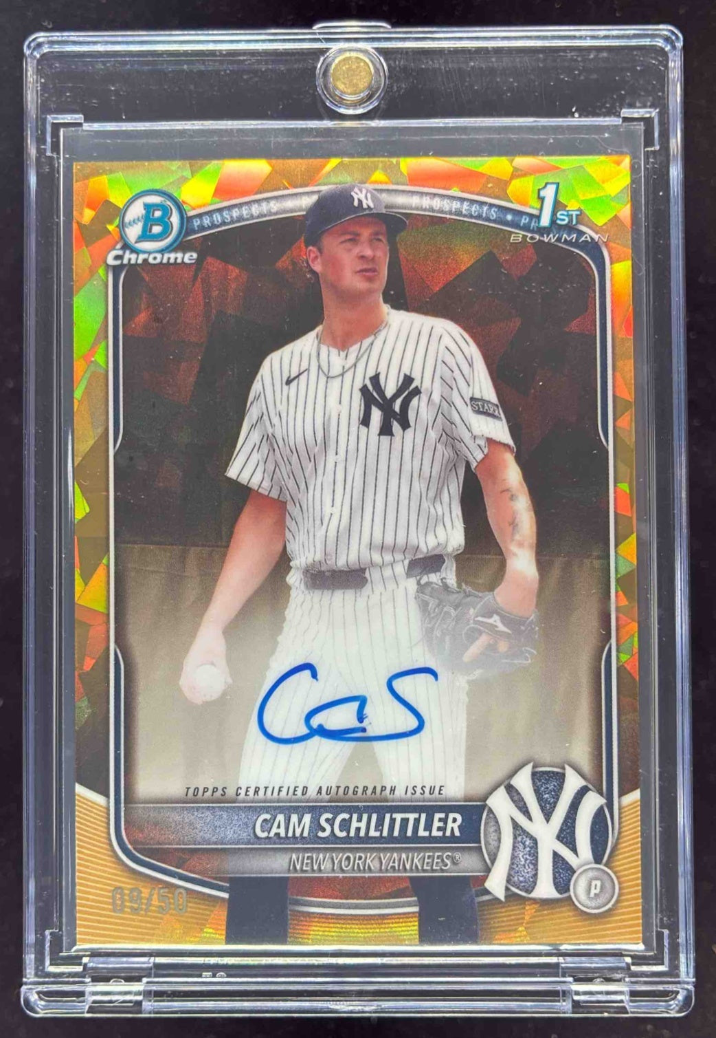 2025 Bowman Chrome Sapphire Gold Refractor #CPSA-CS Cam Schlittler RC Auto /50