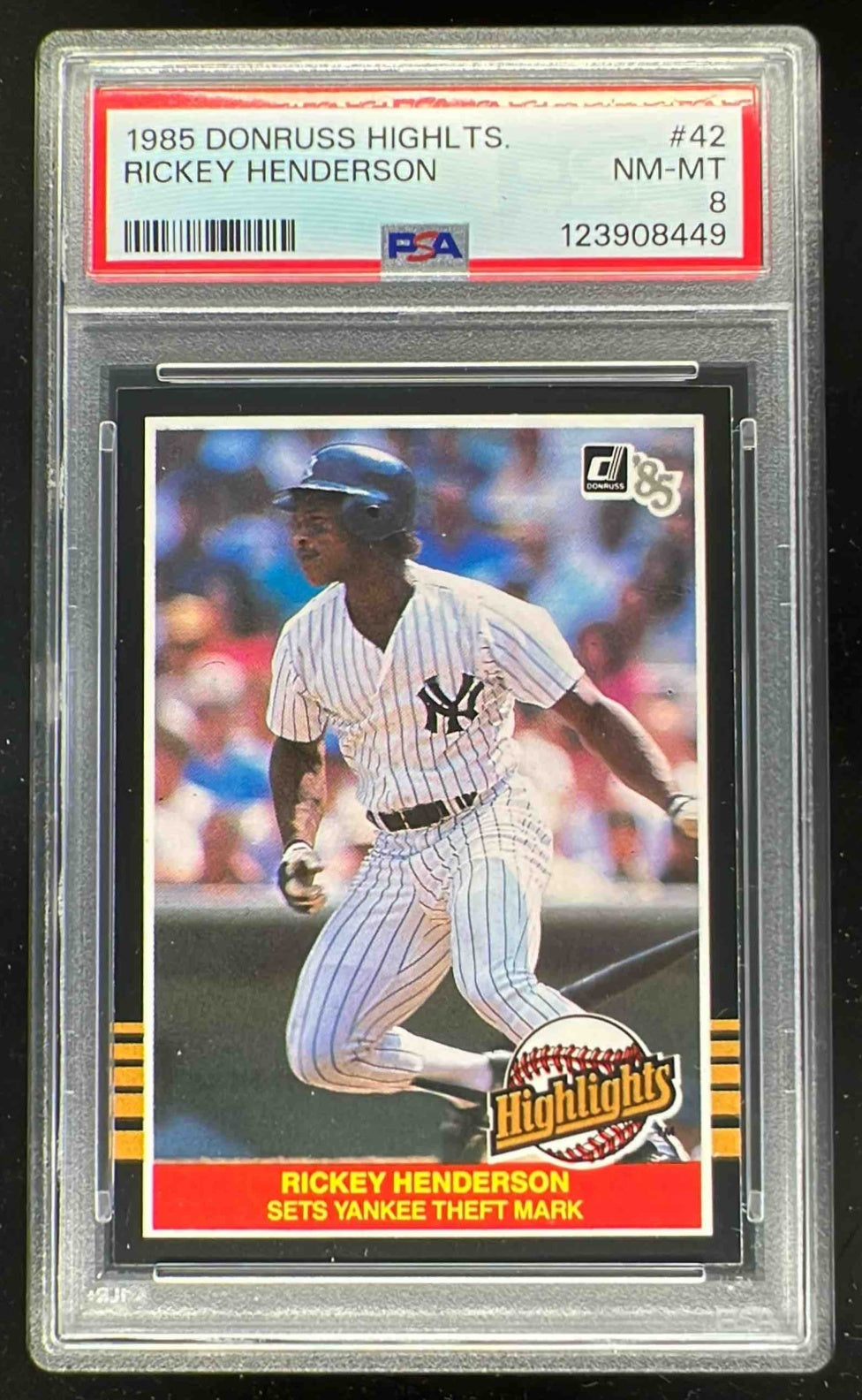 1985 Donruss Highlights #42 Rickey Henderson PSA 8