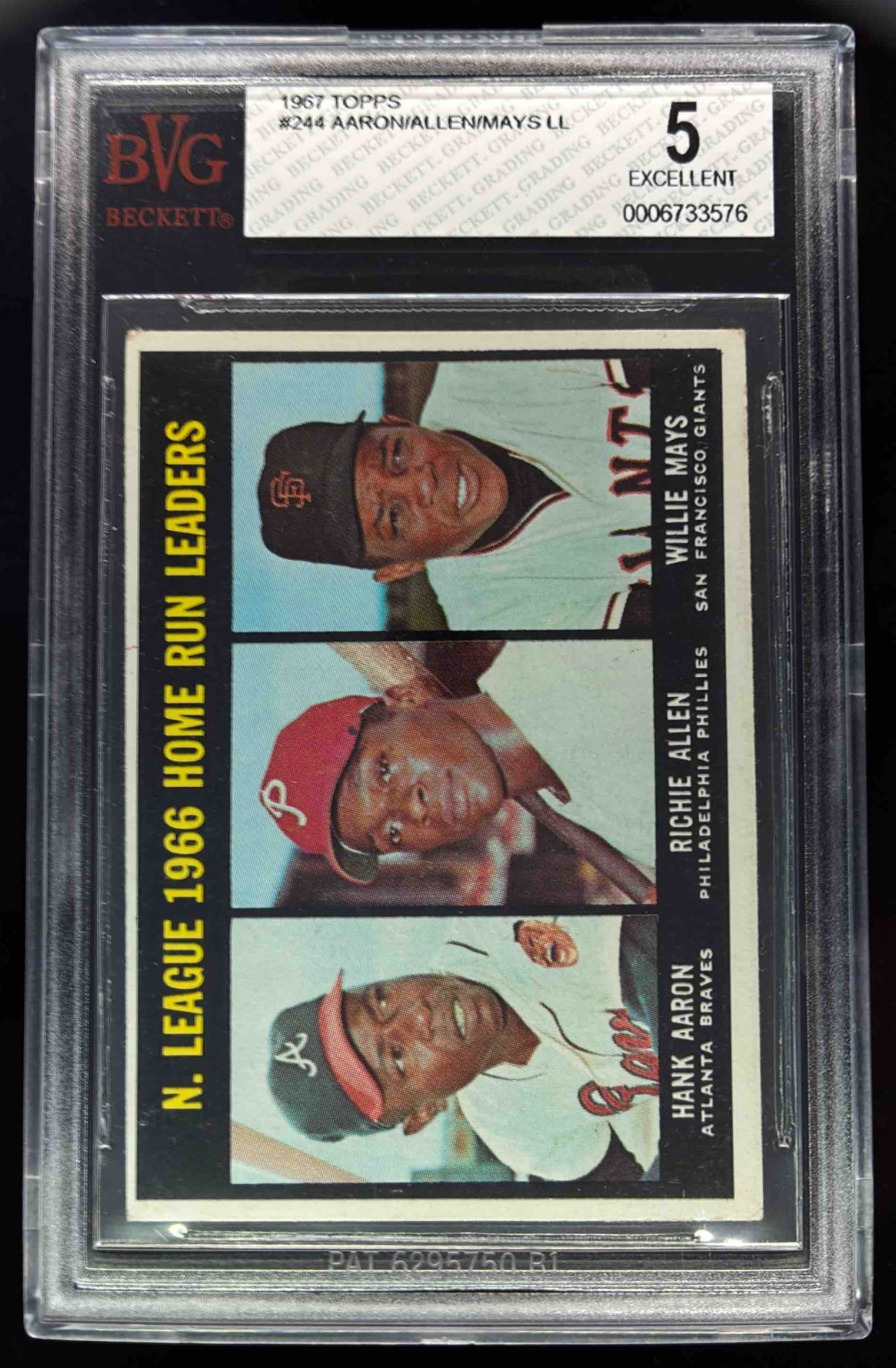1967 Topps #244 HR Leaders Hank Aaron Richie Allen Willie Mays BGS 5