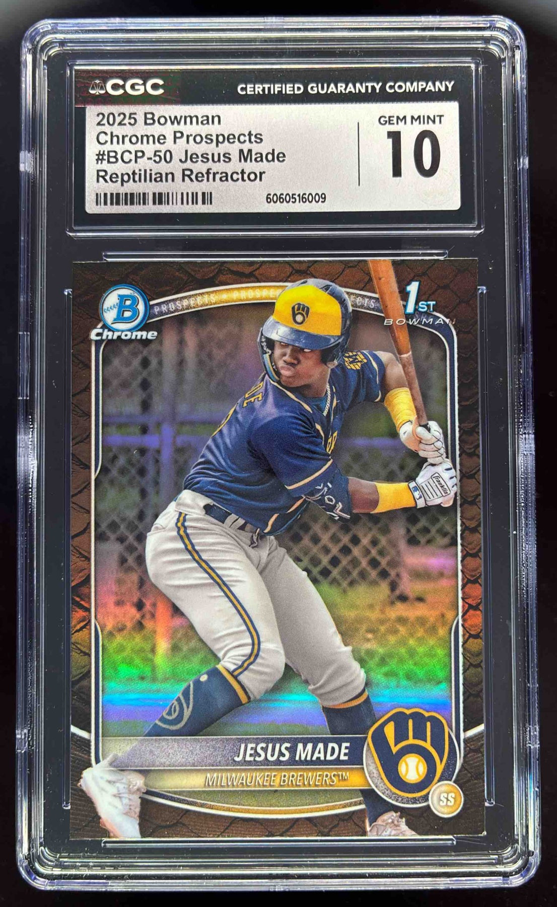 2025 Bowman Chrome Reptilian Refractor #BCP-50 Jesus Made 1st Prospect CGC 10
