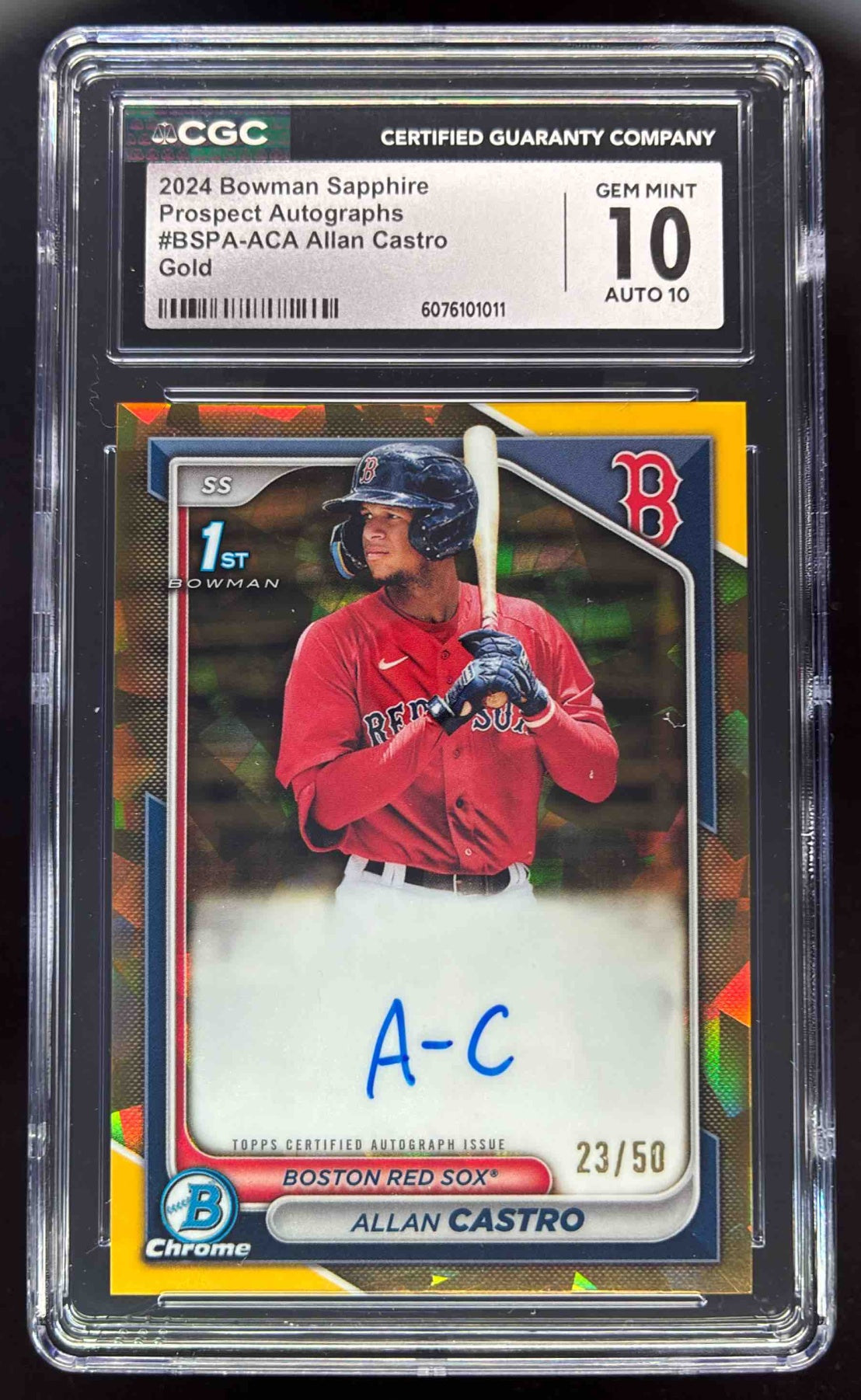 2024 Bowman Sapphire Chrome Gold Sapphire Allan Castro RC Auto /50 CGC 10