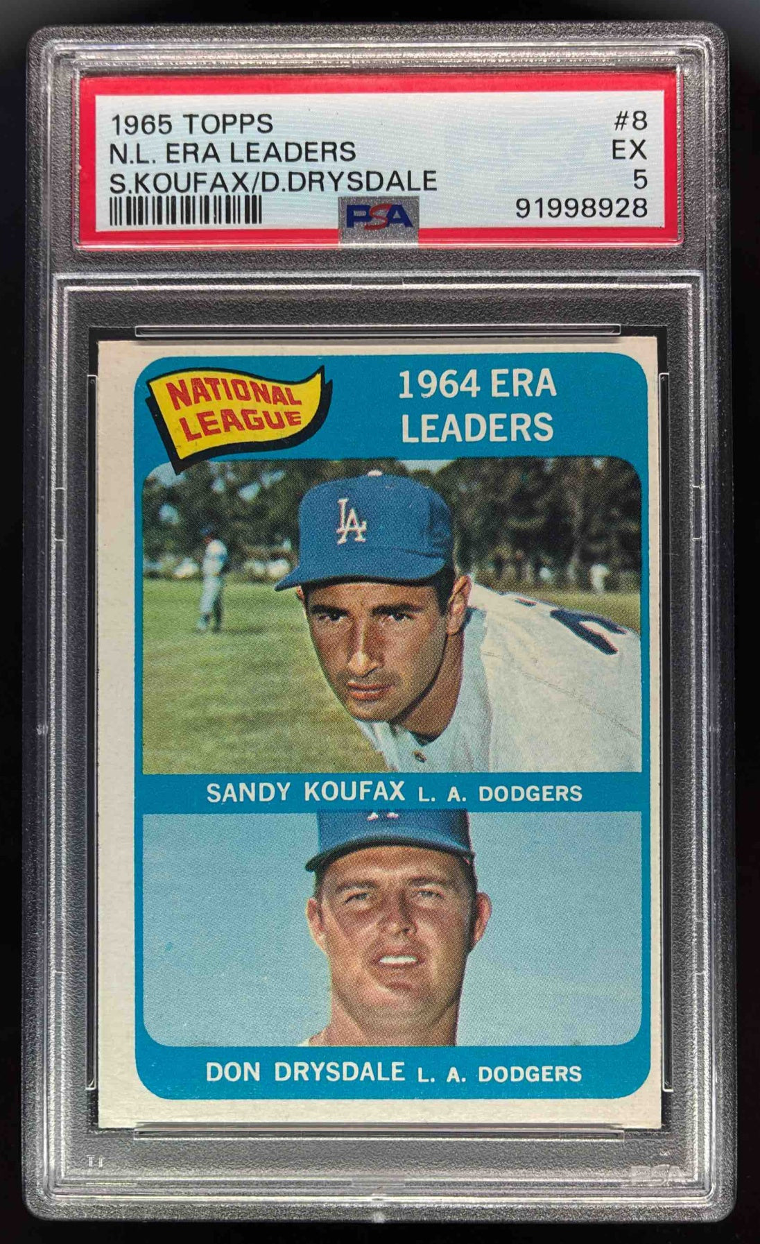 1965 Topps #8 National League 1964 ERA Leaders (Sandy Koufax Don Drysdale) PSA 5