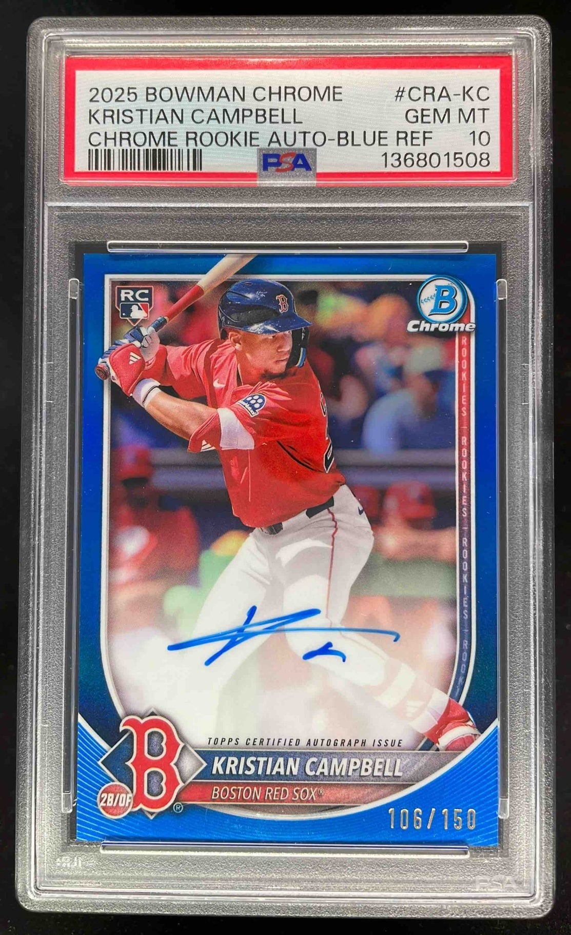 2025 Bowman Chrome Rookie Blue #CRA-KC Kristian Campbell RC Auto /150 PSA 10