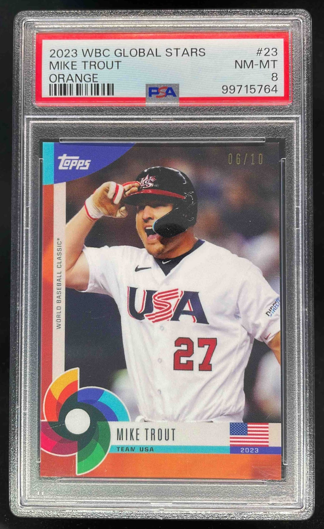 2023 Topps WBC Global Stars Orange #23 Mike Trout /10 PSA 8