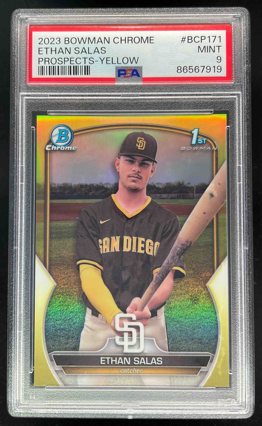 2023 Bowman Chrome Prospects Yellow Refractor #BCP-171 Ethan Salas RC /75 PSA 9