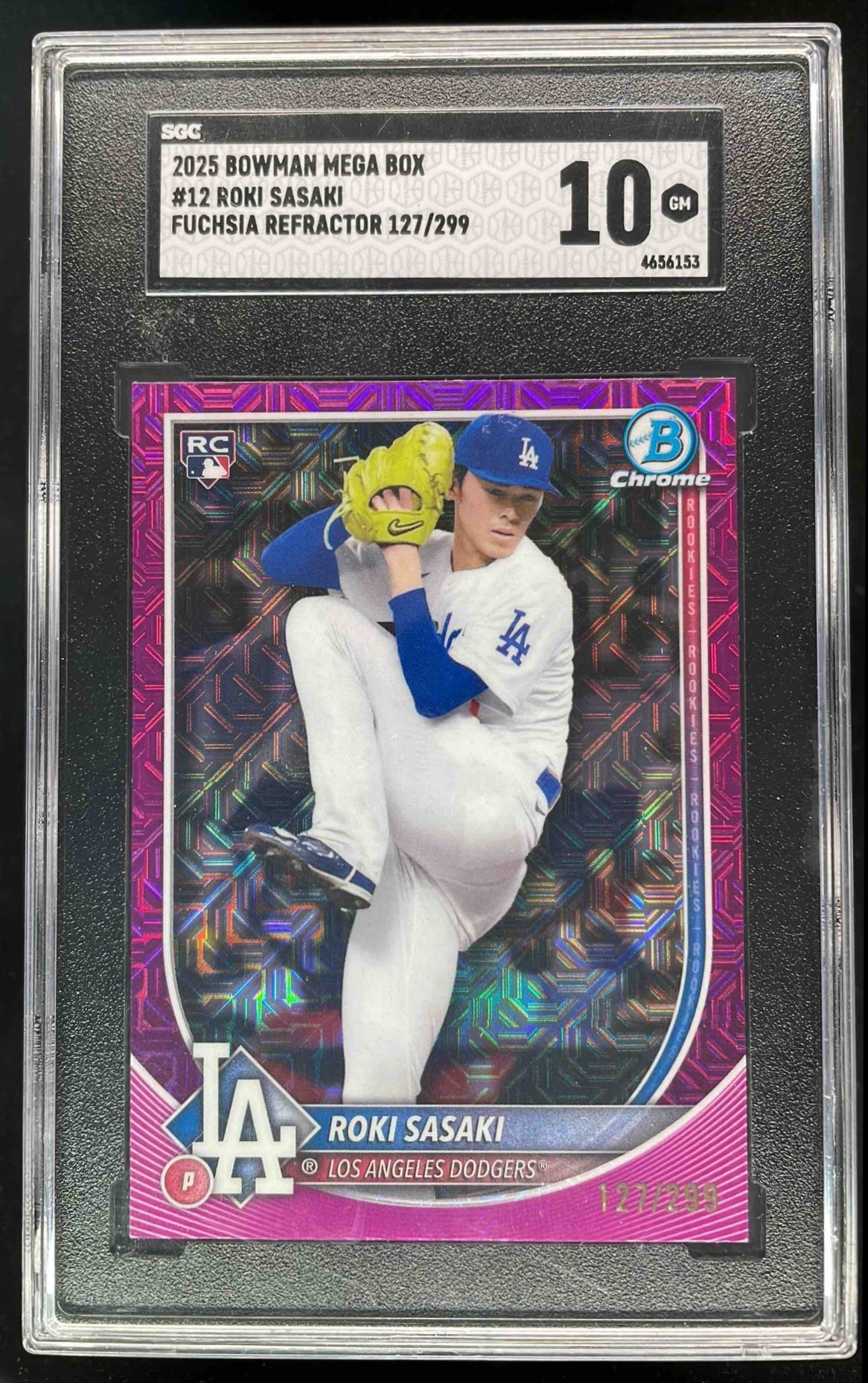 2025 Bowman Mega Box Fuchsia Refractors #12 Roki Sasaki RC /299 SGC 10