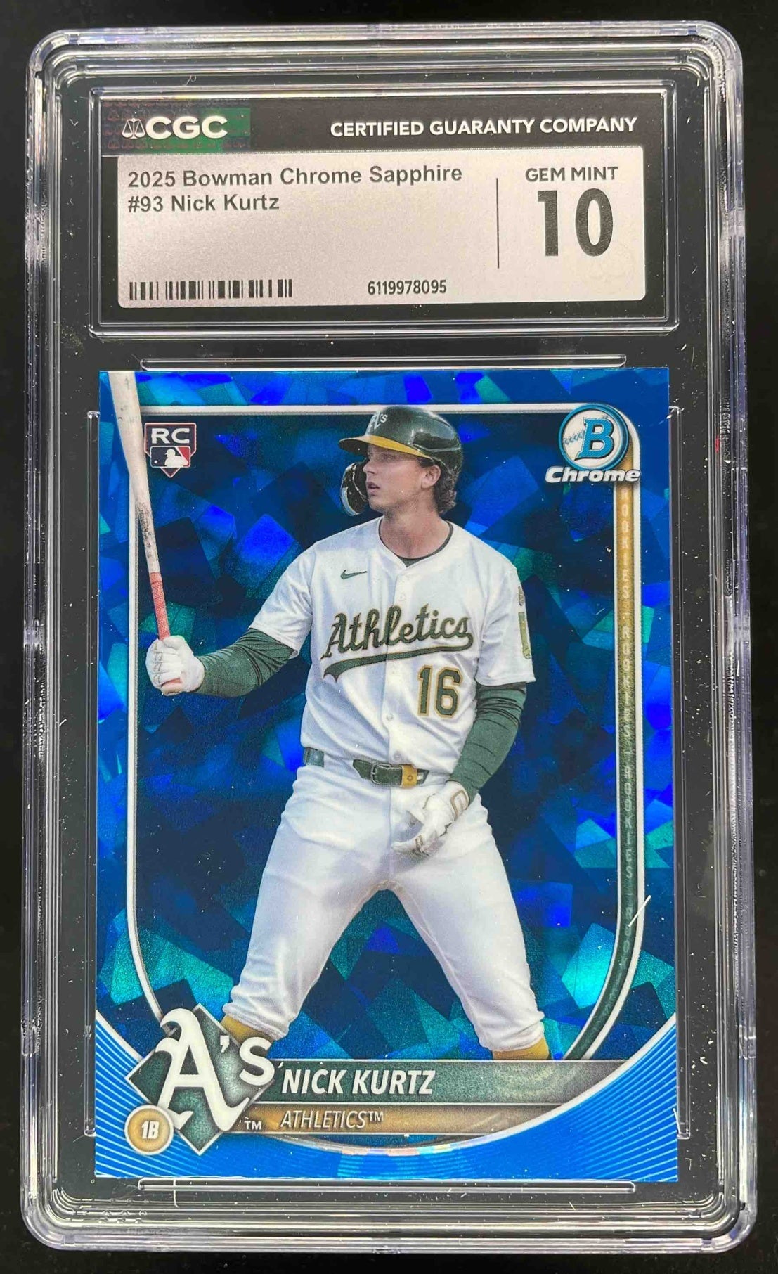 2025 Bowman Chrome Sapphire #93 Nick Kurtz RC CGC 10