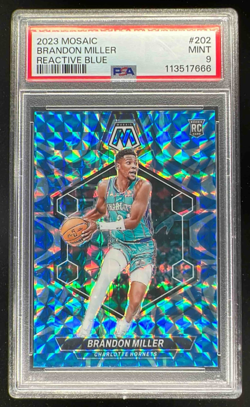 2023-24 Panini Mosaic Reactive Blue Prizm #202 Brandon Miller RC PSA 9