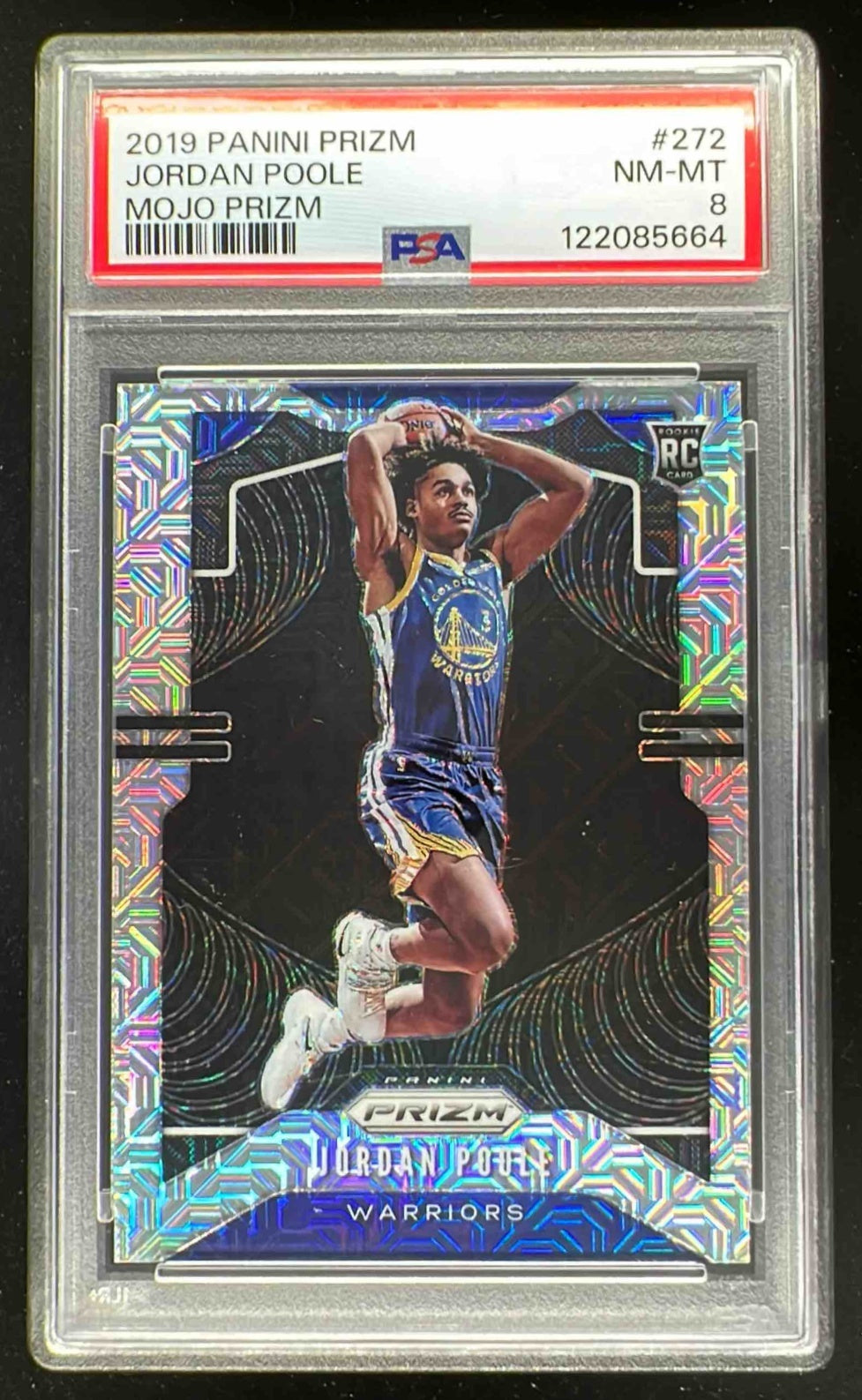 2019-20 Panini Prizm Prizms Mojo #272 Jordan Poole RC /25 PSA 8