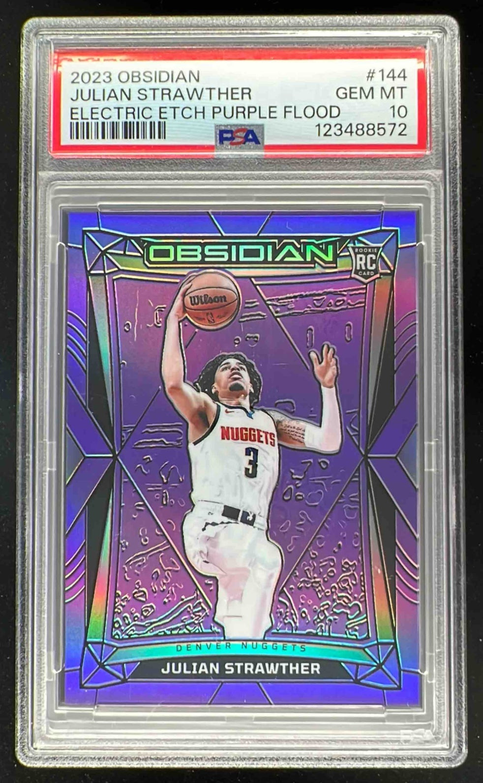 2023 Obsidian Electric Etch Purple Flood #144 Julian Strawther RC /49 PSA 10