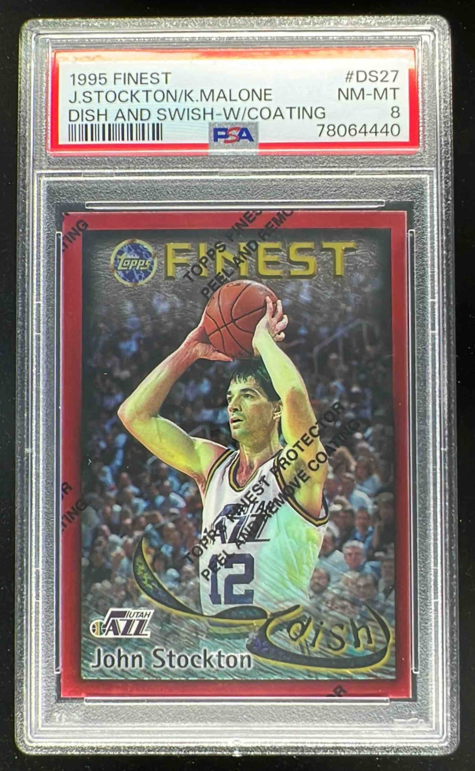 1995-96 Topps Finest Dish and Swish #DS27 John Stockton Karl Malone PSA 8