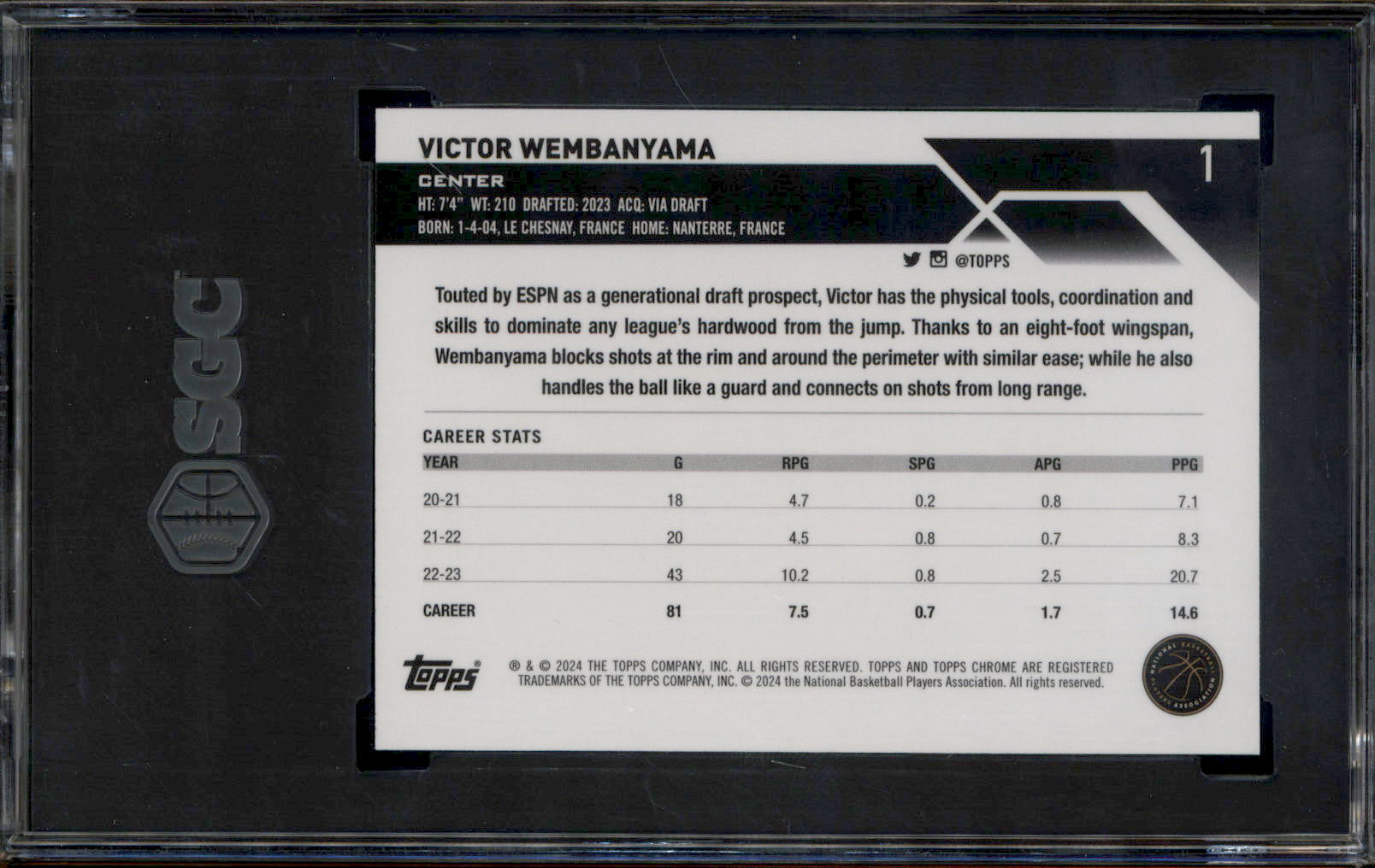 2023 Topps Chrome Blue Basketball Refractor #1 Victor Wembanyama RC SGC 9.5