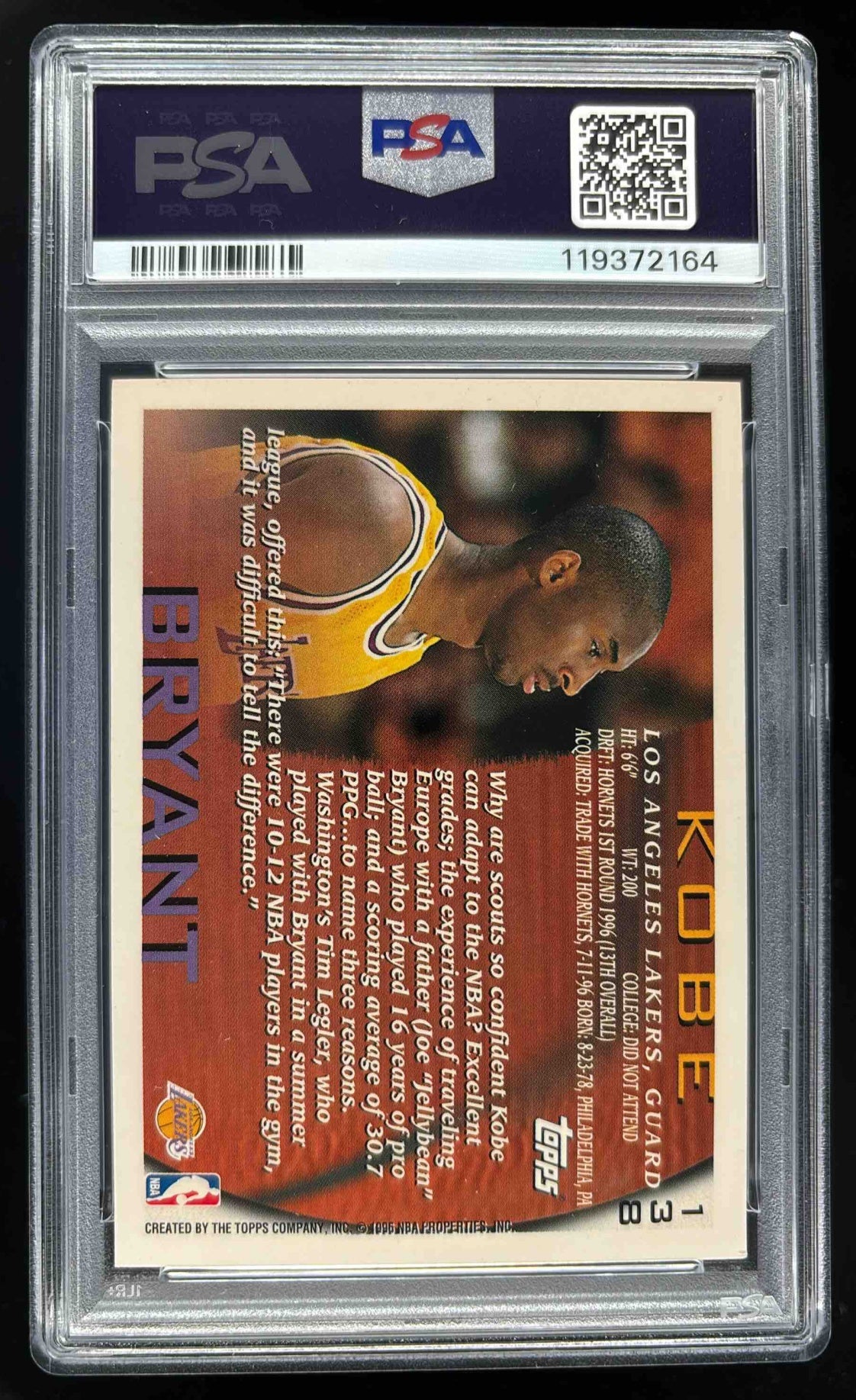 1996-97 Topps #138 Kobe Bryant RC PSA 7