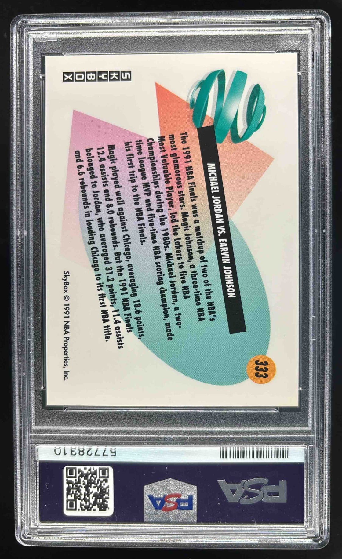 1991-92 Skybox #333 Michael Jordan vs. Magic Johnson PSA 8