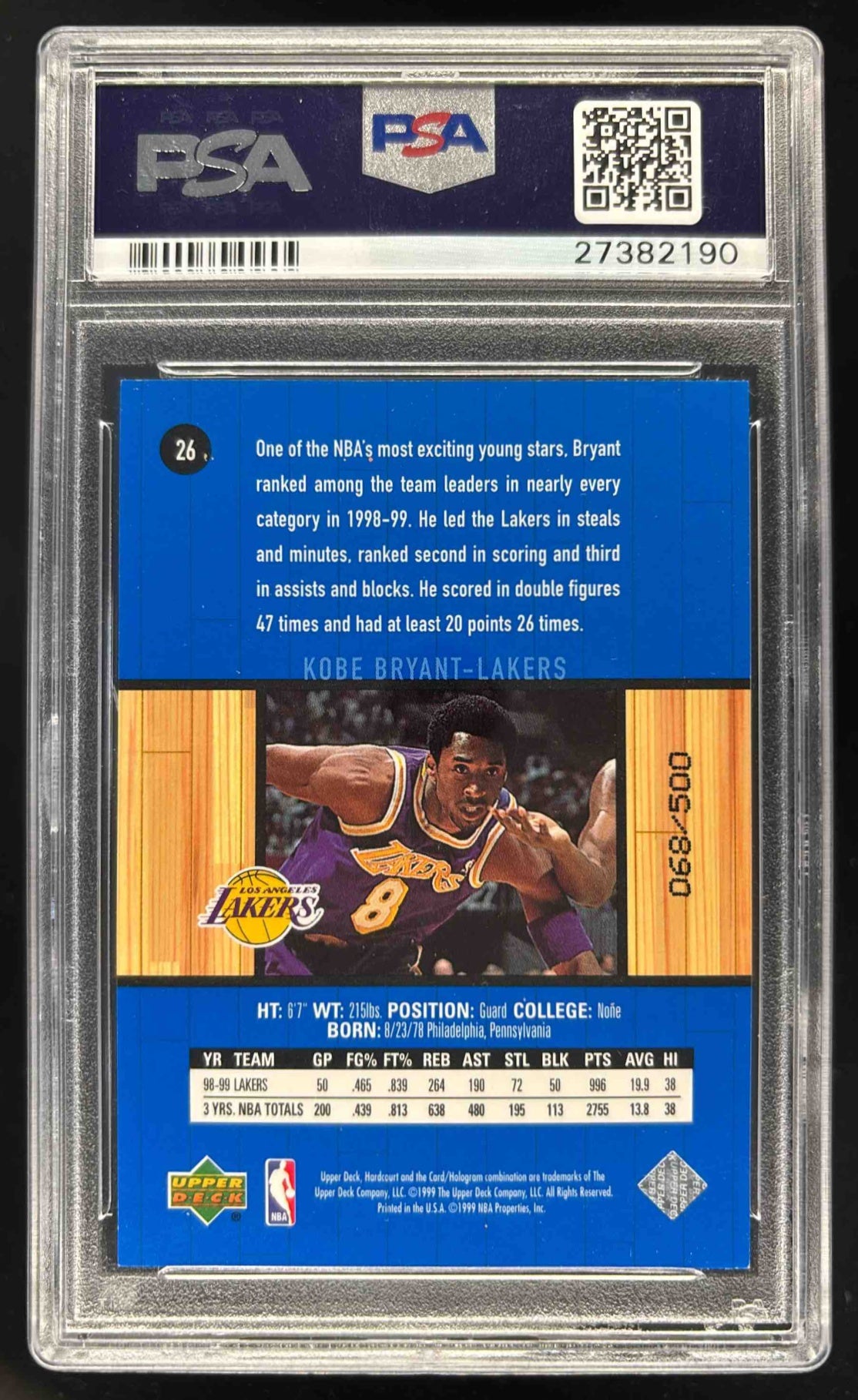 1999-00 Upper Deck Hardcourt Baseline Grooves Rainbow #26 Kobe Bryant /500 PSA 9