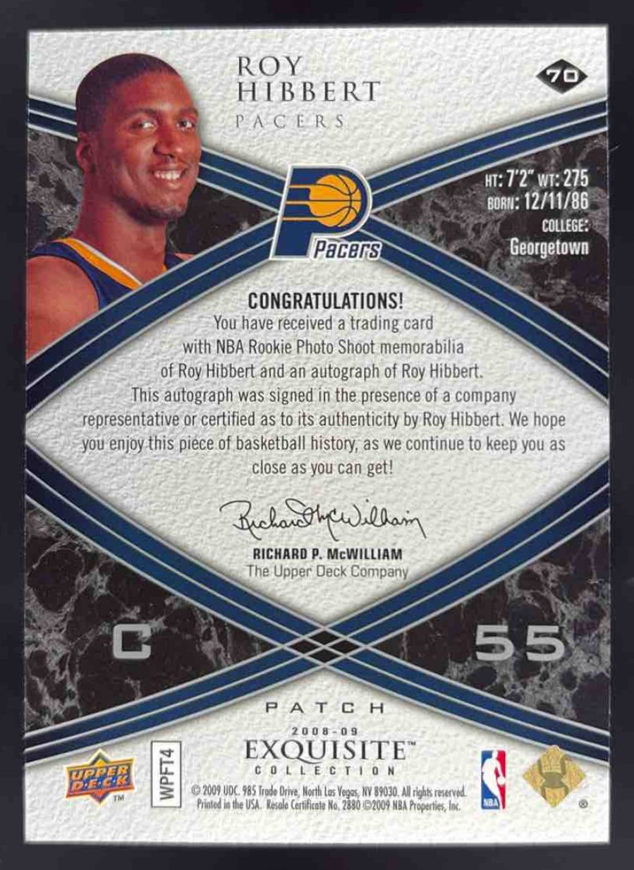 2008-09 Upper Deck Exquisite Collection #70 Roy Hibbert RC Auto /225
