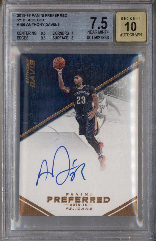 2015-16 Panini Preferred #106 Anthony Davis Auto Black Box 1/1 BGS 7.5