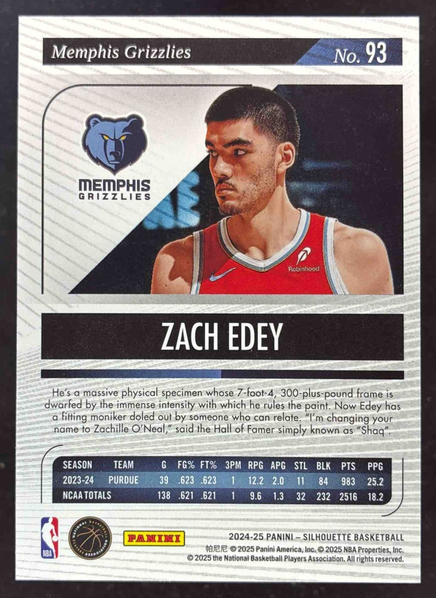 2024-25 Panini Silhouette FOTL Platinum #93 Zach Edey RC /3