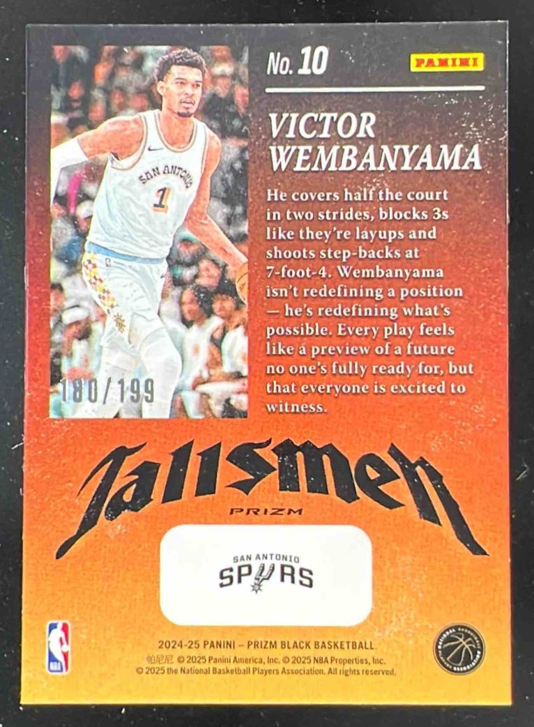 2024-25 Panini Prizm Black Talismen Blue Prizms #10 Victor Wembanyama /199
