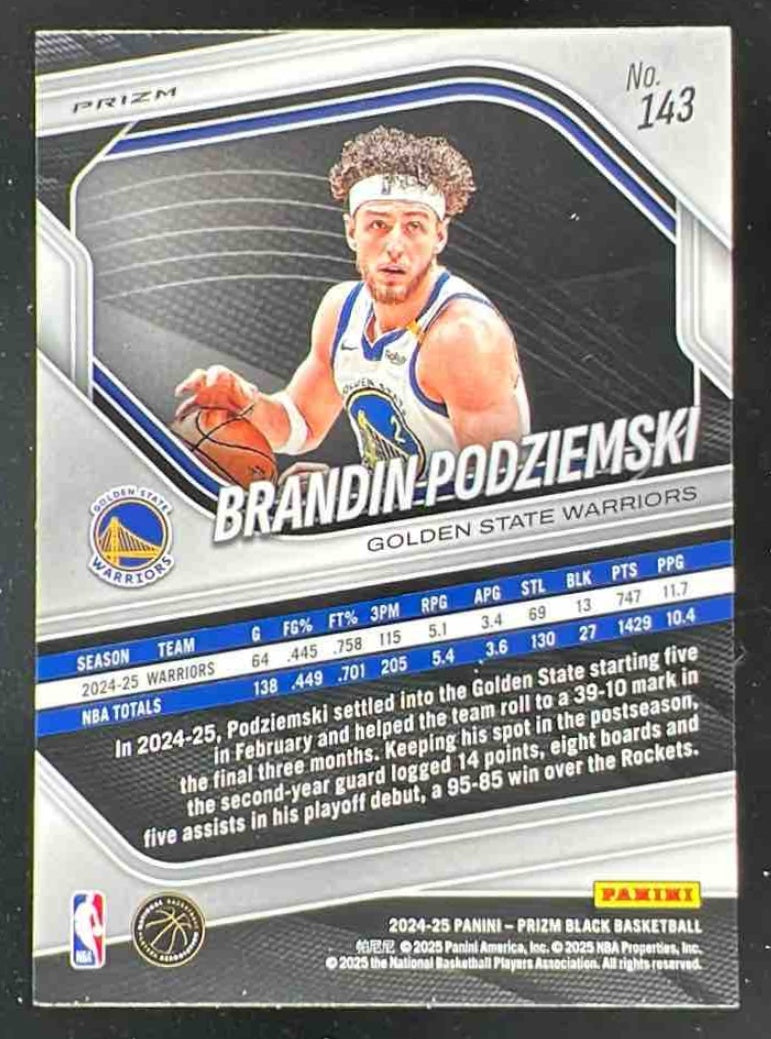 2024-25 Panini Prizm Black Snakeskin Prizms #143 Brandin Podziemski