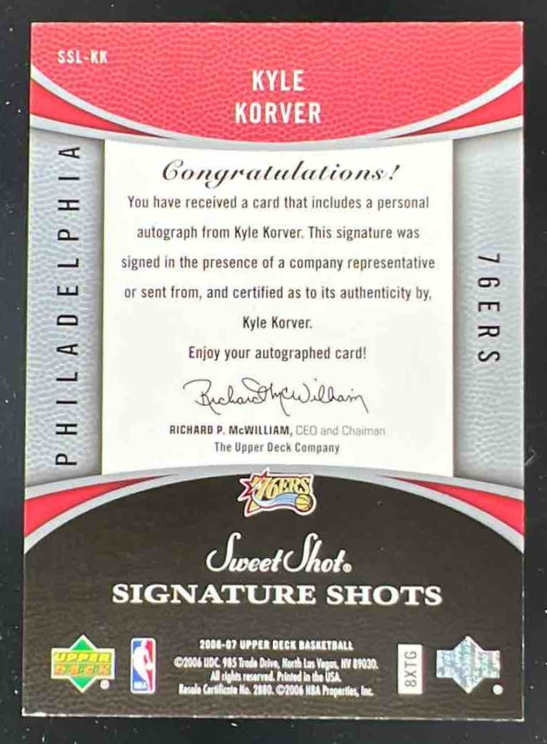 2006-07 Sweet Shot Signature Shots Leather #SSL-KK Kyle Korver Autograph Auto