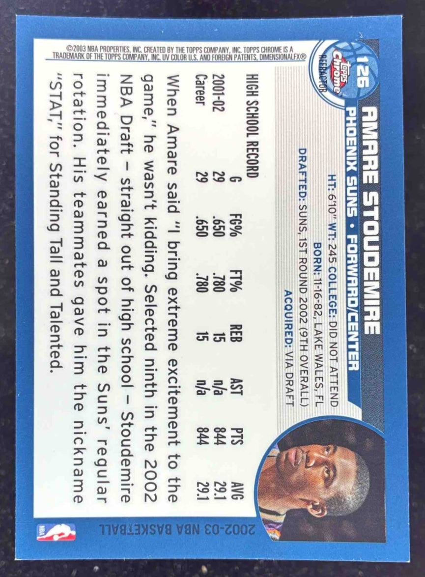 2002-03 Topps Chrome Refractors #126 Amare Stoudemire RC