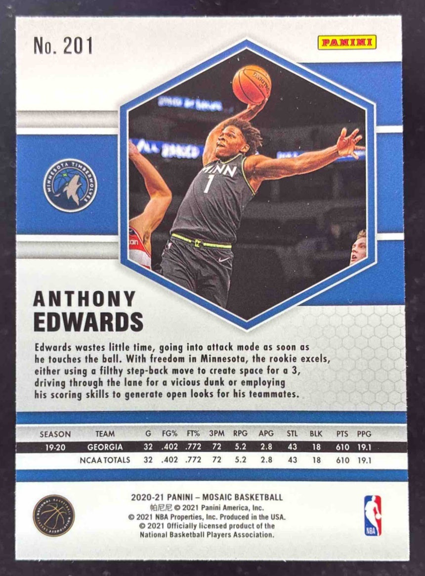 2020-21 Panini Mosaic Mosaic #201 Anthony Edwards RC