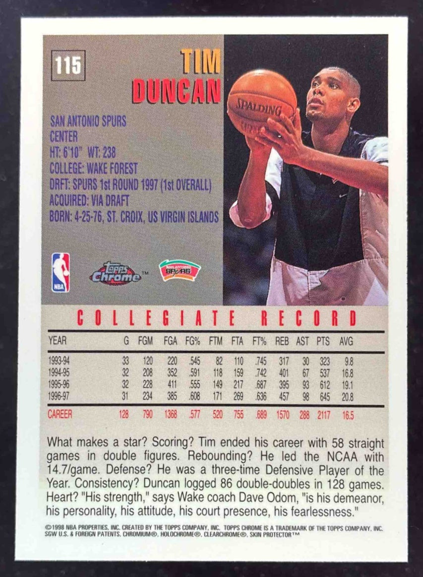 1997-98 Topps Chrome #115 Tim Duncan RC
