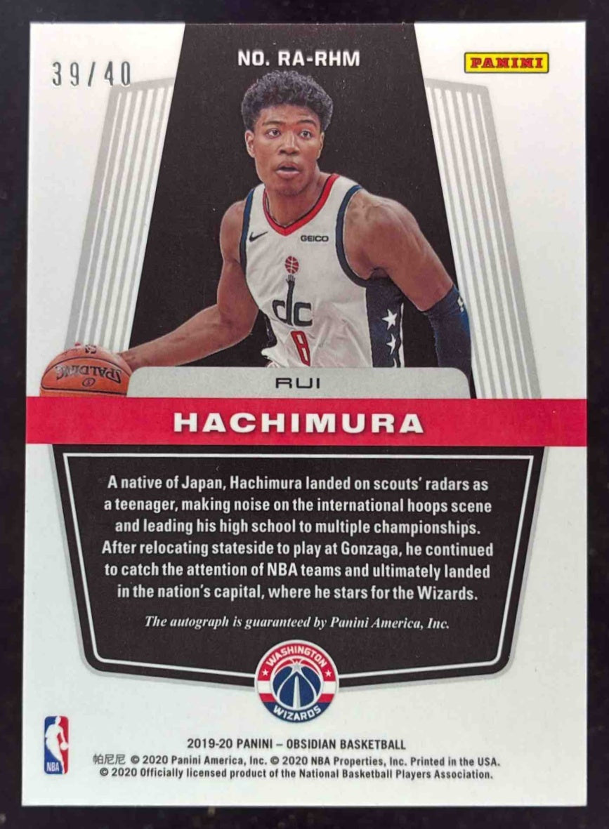 2019 Obsidian Rookie Electric Etch Purple #RA-RHM Rui Hachimura RC Auto /40