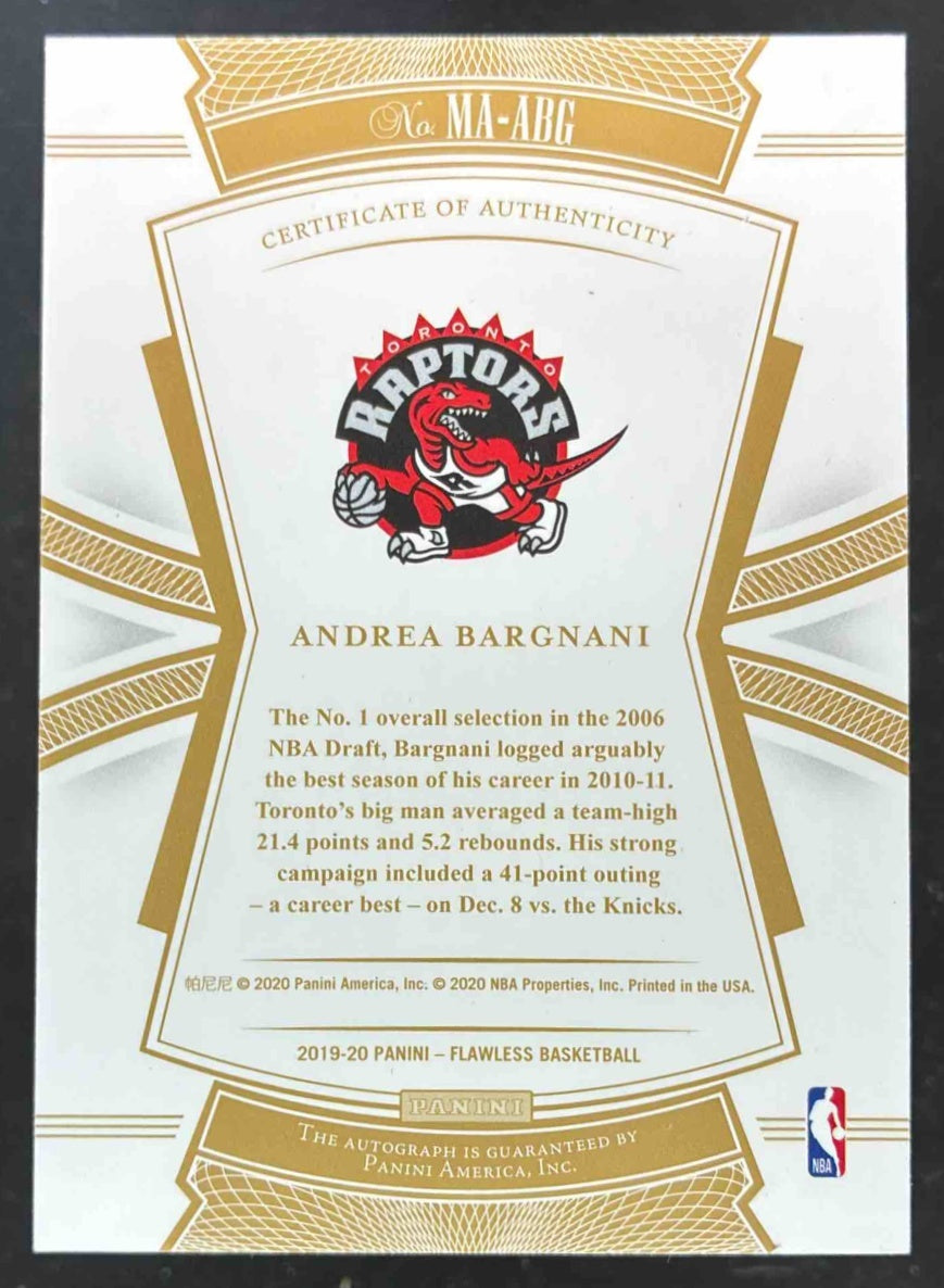 2019-20 Flawless Momentous Autographs Gold #MA-ABG Andrea Bargnani Auto /10