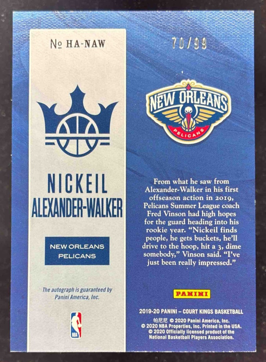 2019 Panini Court Kings Heir Apparent Ruby Nickeil Alexander-Walker RC Auto /99
