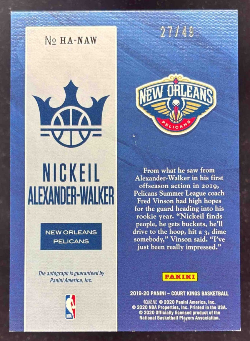 2019 Court Kings Heir Apparent Citrine #NAW Nickeil Alexander-Walker RC Auto /49