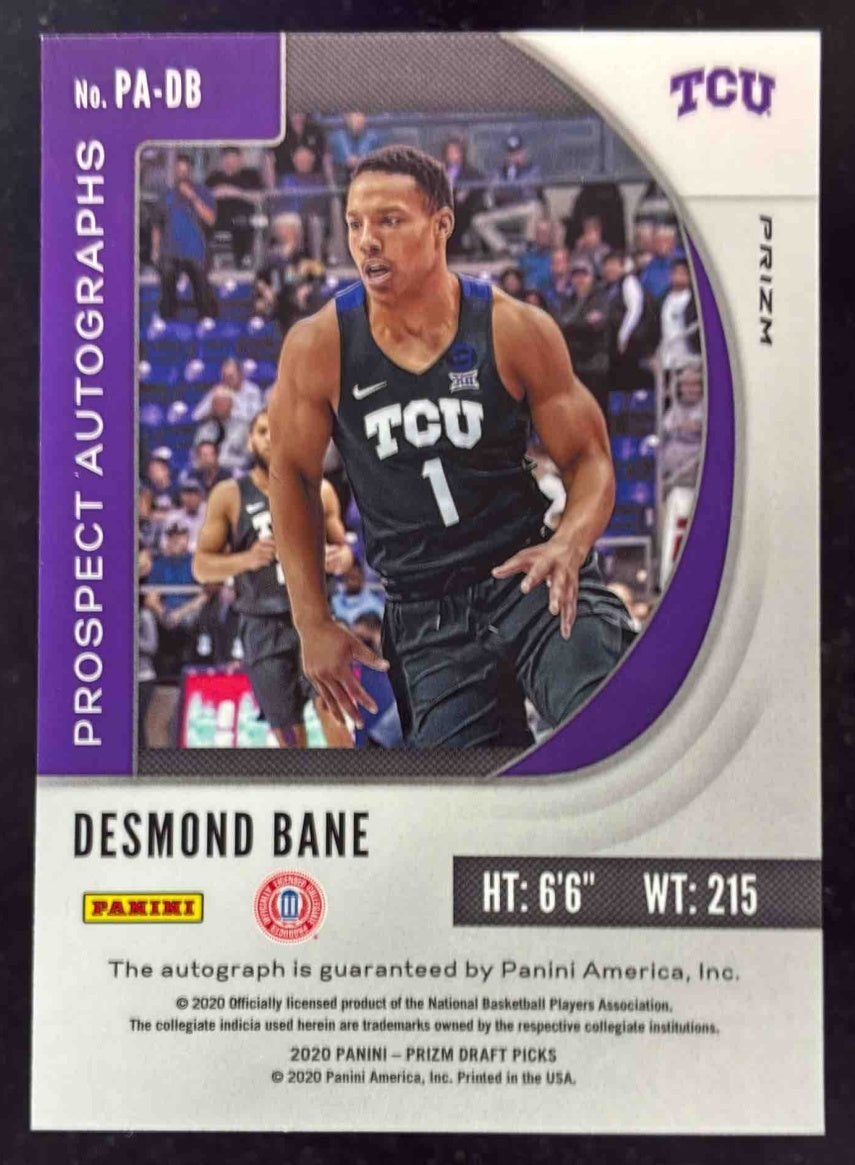 2020-21 Panini Prizm Draft Collegiate Green Prizm #PA-DB Desmond Bane RC Auto