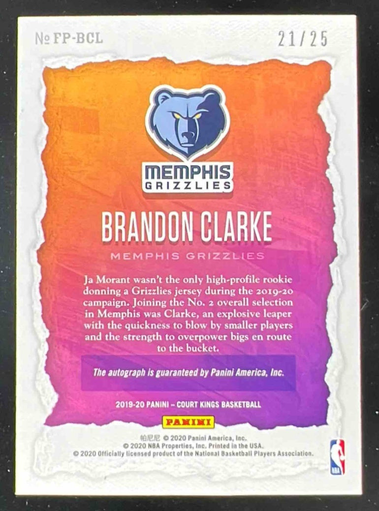 2019 Panini Court Kings Fresh Paint Sapphire #FP-BCL Brandon Clarke RC Auto /25