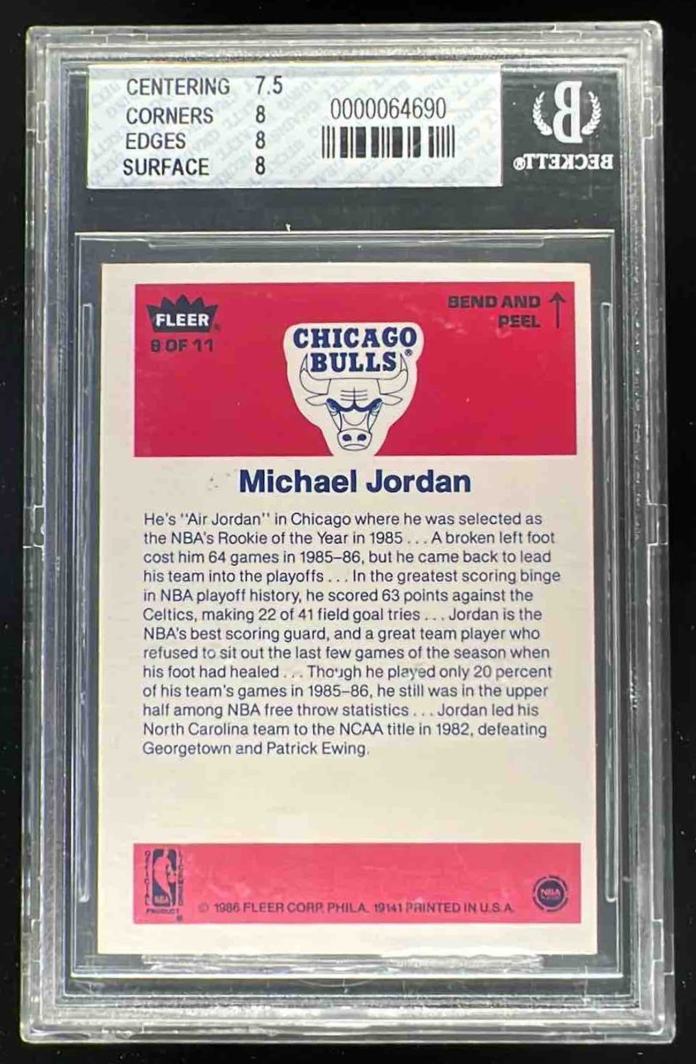 1986-87 Fleer Stickers #8 Michael Jordan RC BGS 8