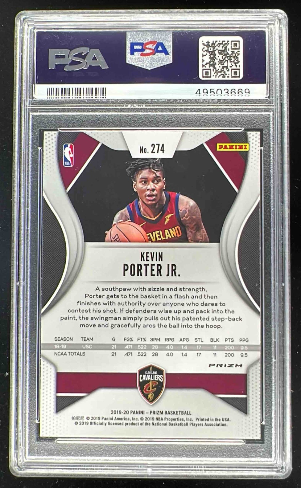 2019-20 Panini Prizm Prizms Silver #274 Kevin Porter Jr. RC PSA 10